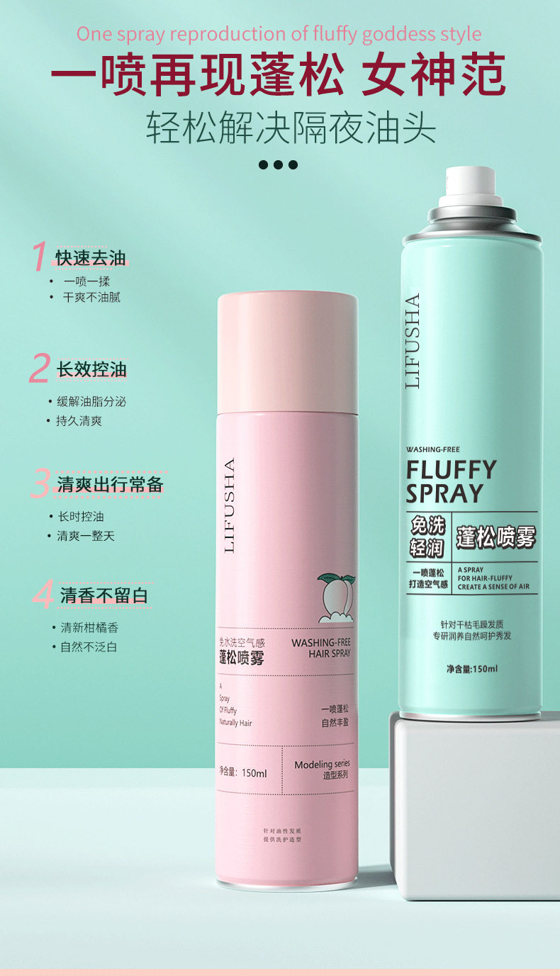 黎芙莎免洗头发喷雾干发蓬松喷雾去油神器蓬蓬粉控油清爽批发代发