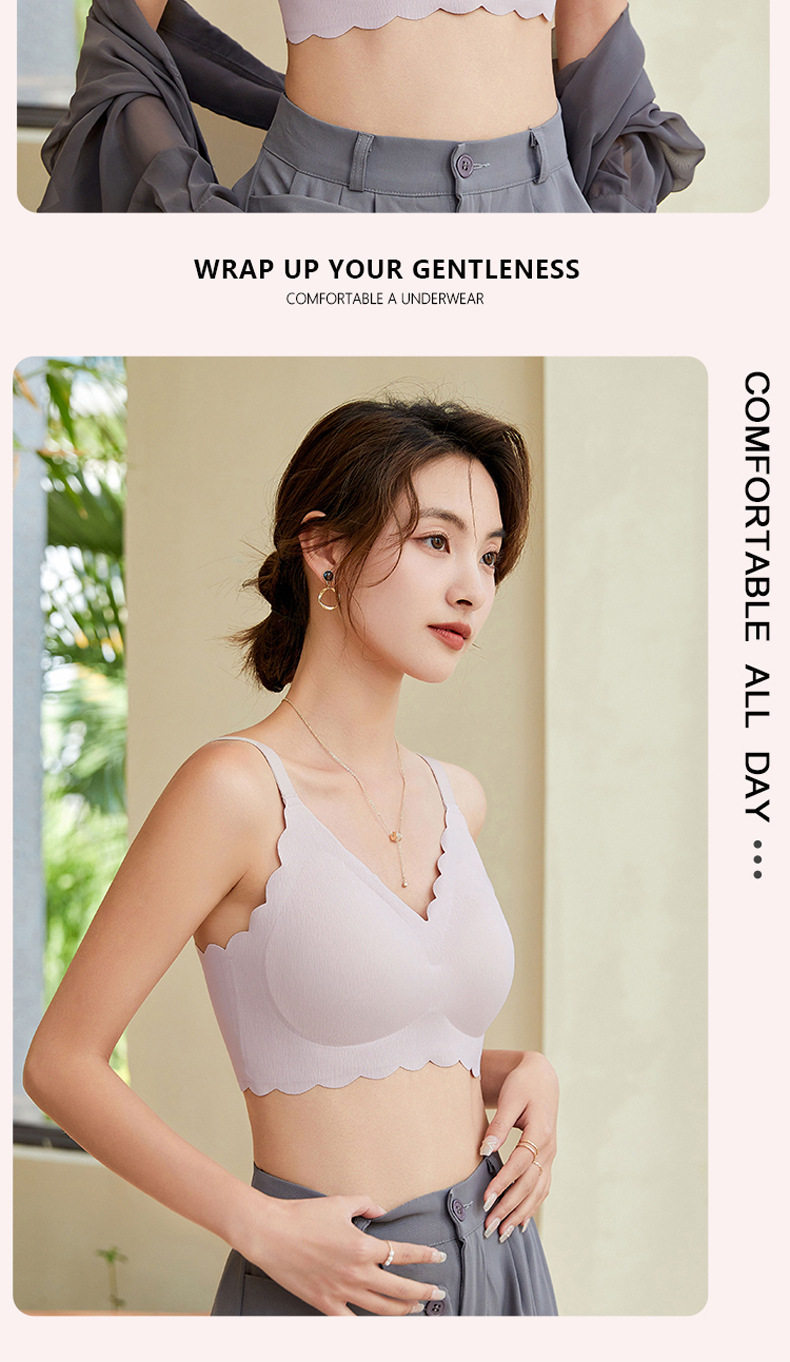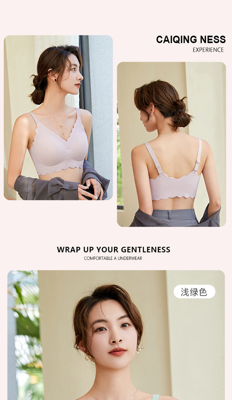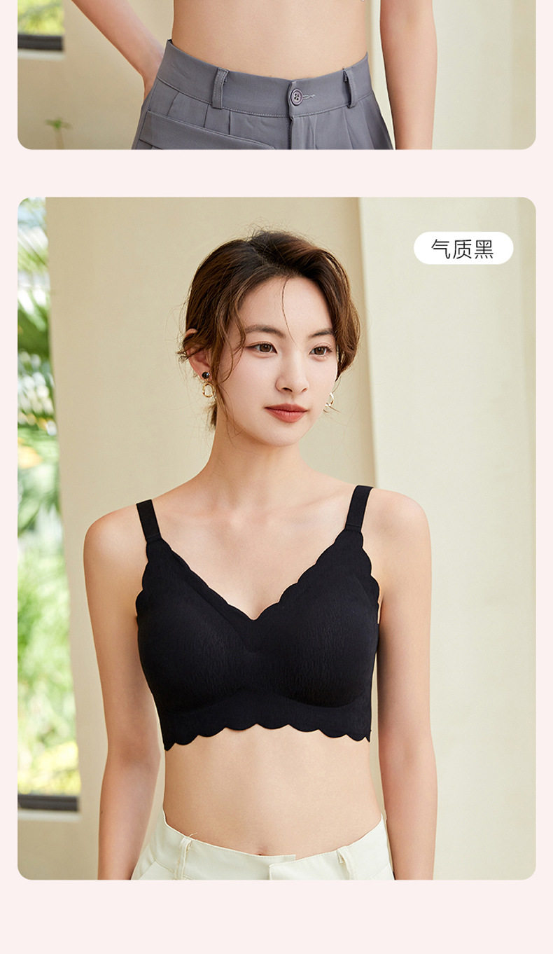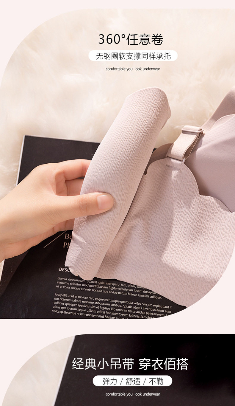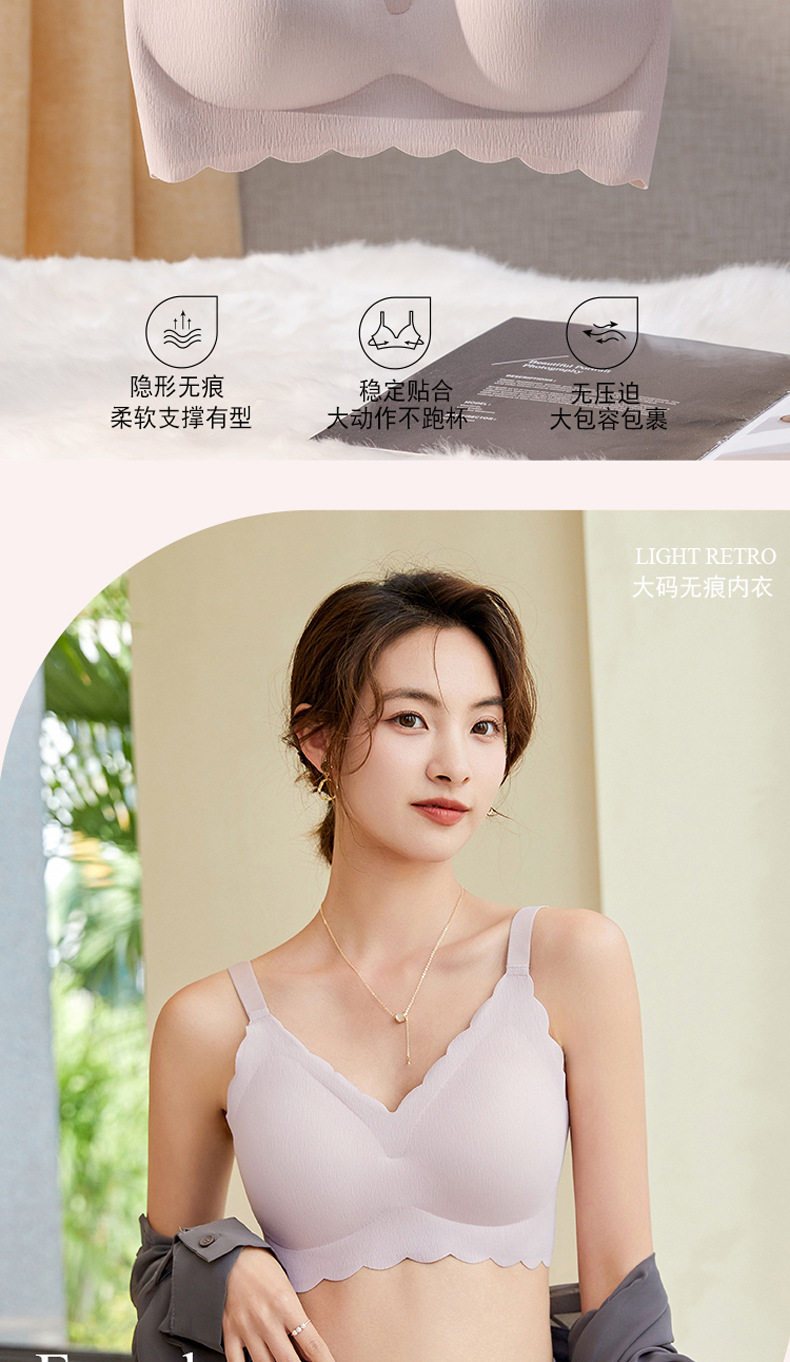 无痕内衣女夏季薄款大胸显小无钢圈聚拢美背一体固定杯睡眠文胸罩