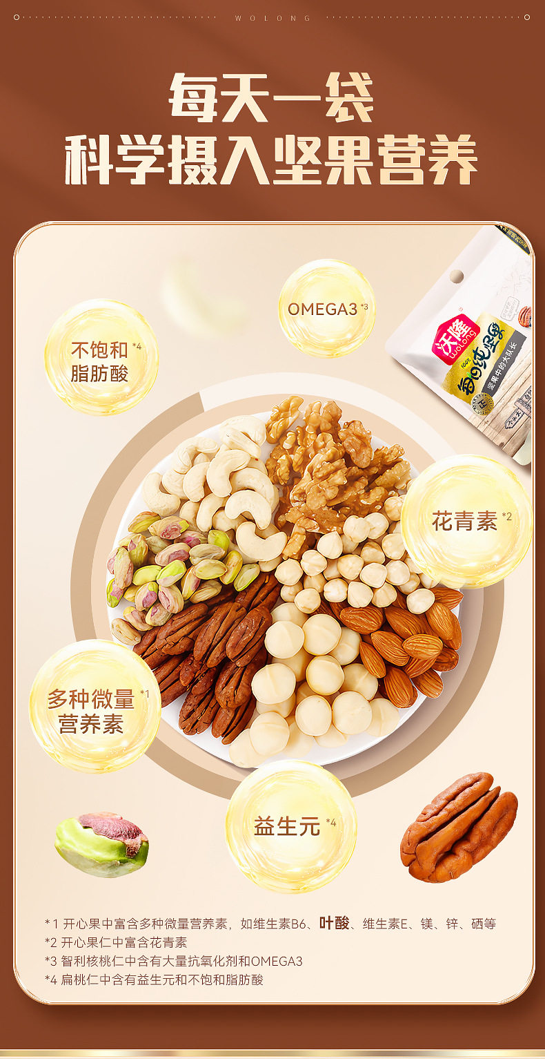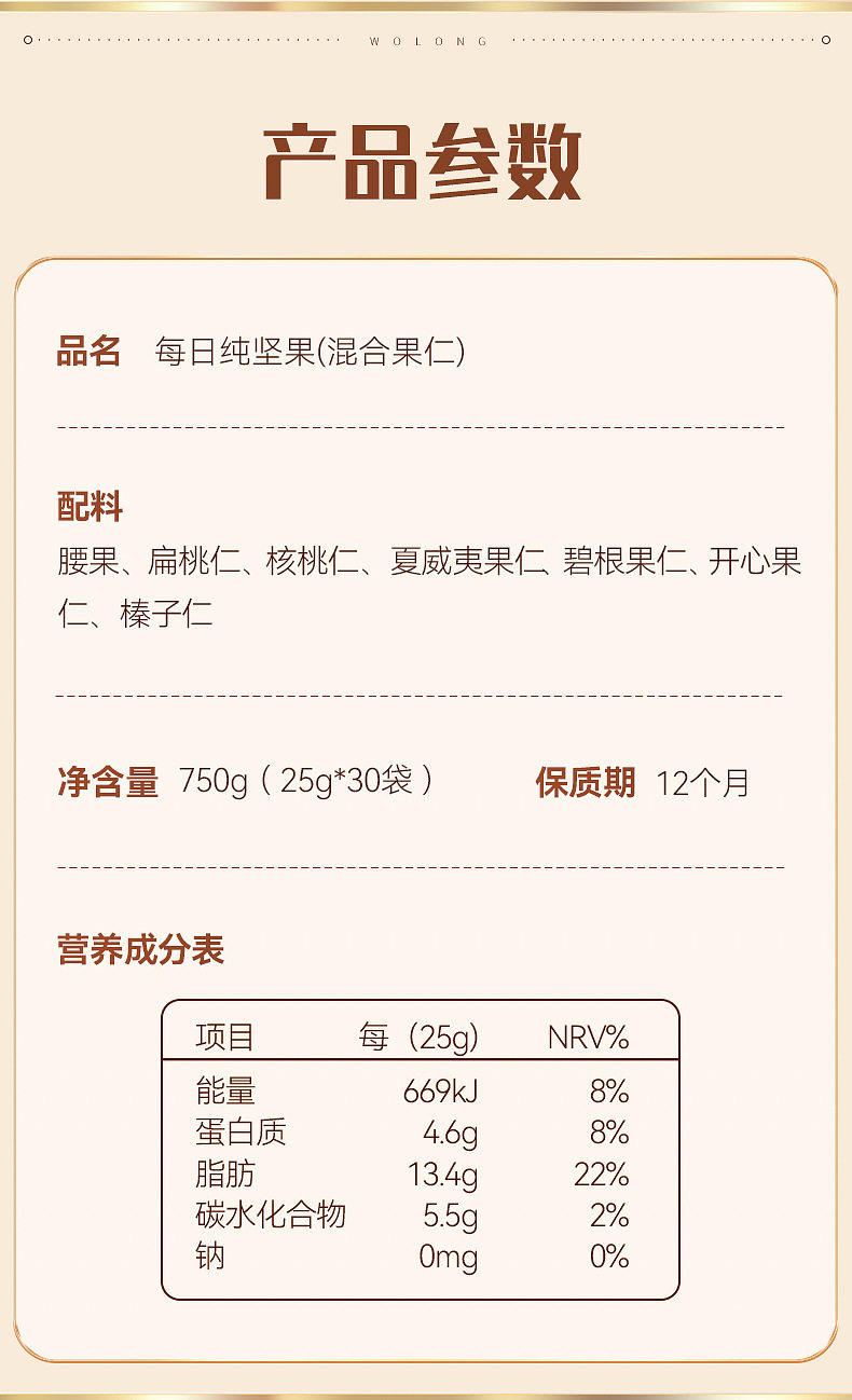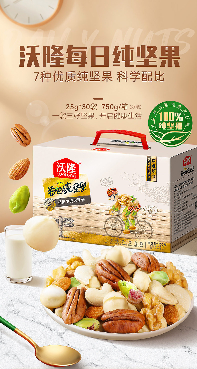 沃隆每日纯坚果750g混合干果30包休闲健康零食礼盒包装伴手礼
