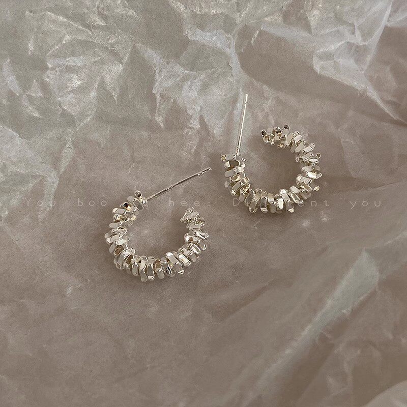 S925银色碎银子c型耳环女百搭小众设计感耳钉简约冷淡风气质耳饰