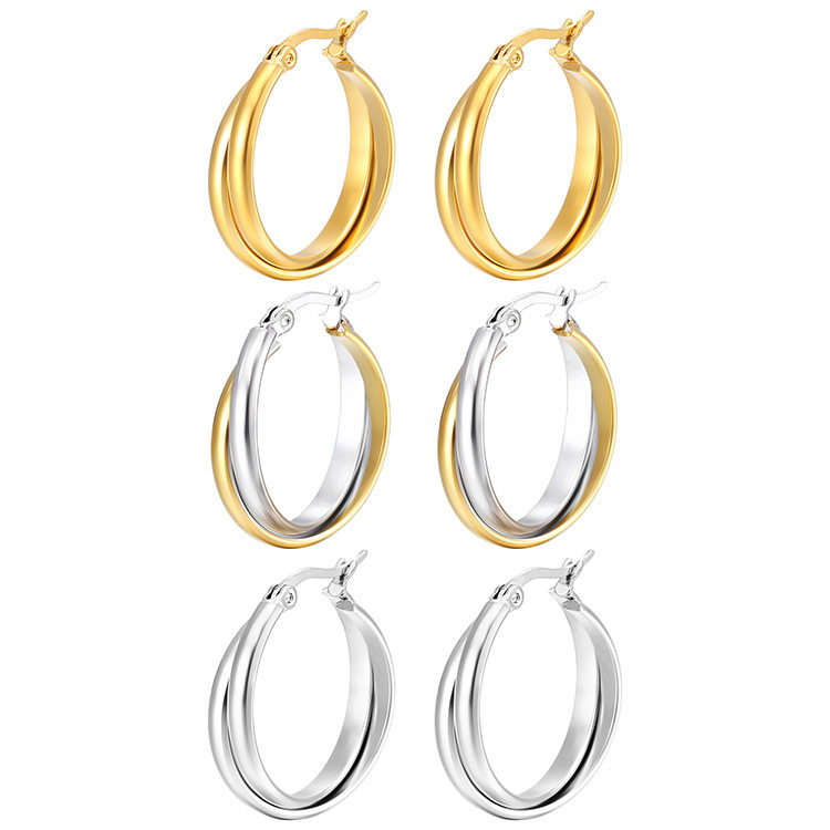 跨境欧美风球面圆形镀18K金双色女士潮流不锈钢耳环简约潮流耳饰