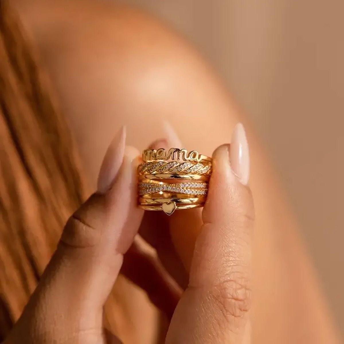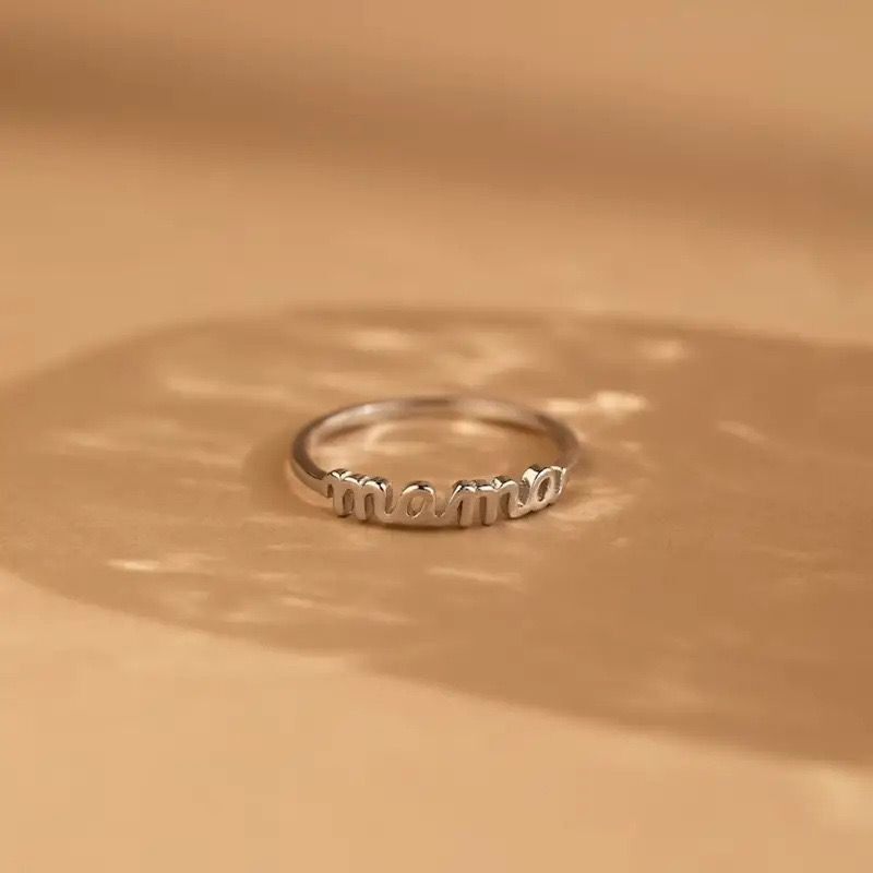 TEMU热销指环亲爱mama字母简约素面戒指送给妈妈完美的母亲节礼物