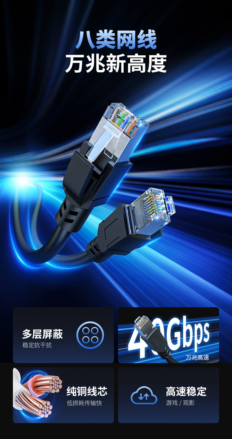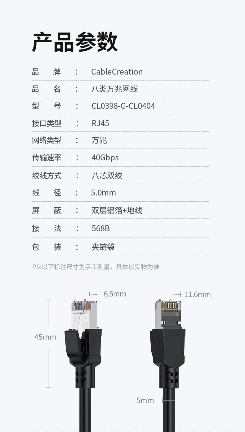 CableCreation 八类网线万兆双层屏蔽网络跳线2000MHz成品网络线