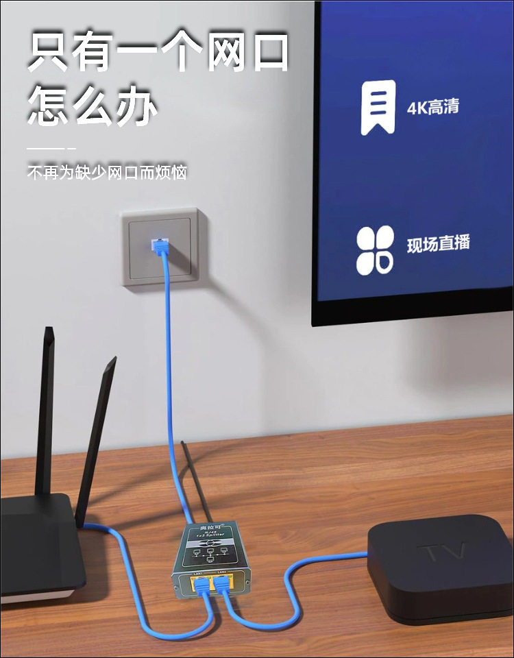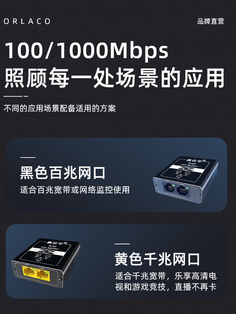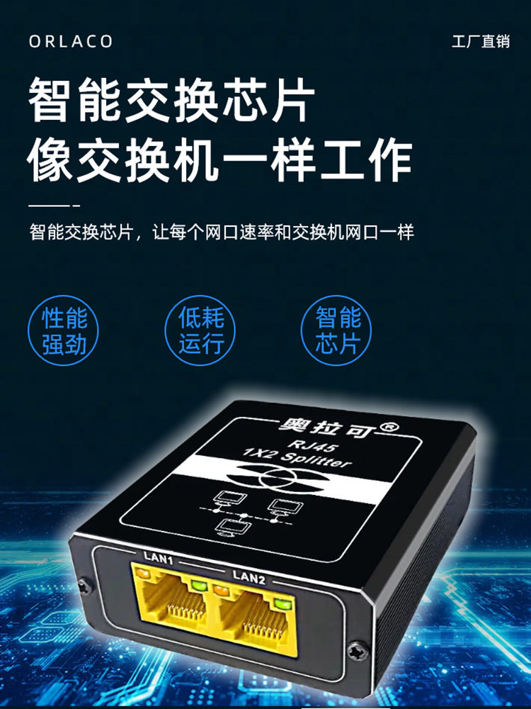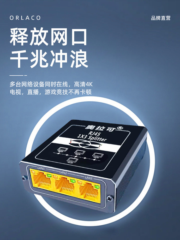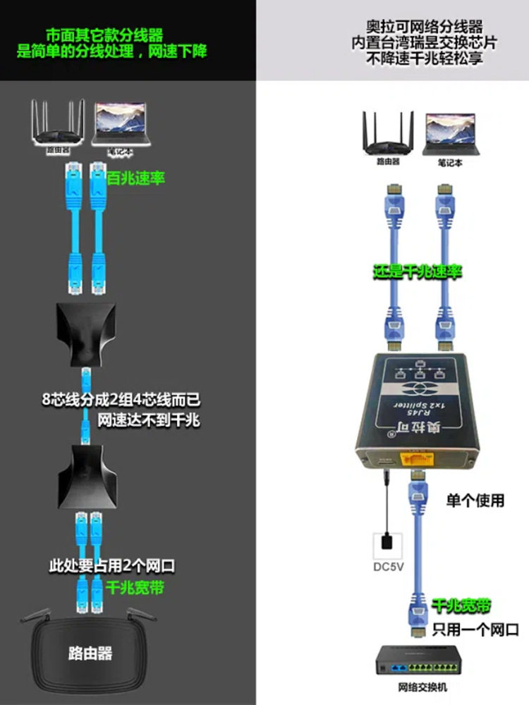 千兆网络分线器一分二同时上网网线分配器1分2台电脑同时上网