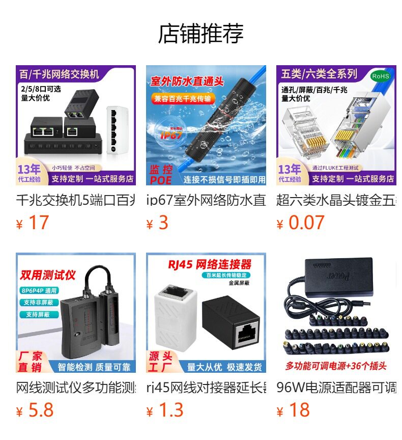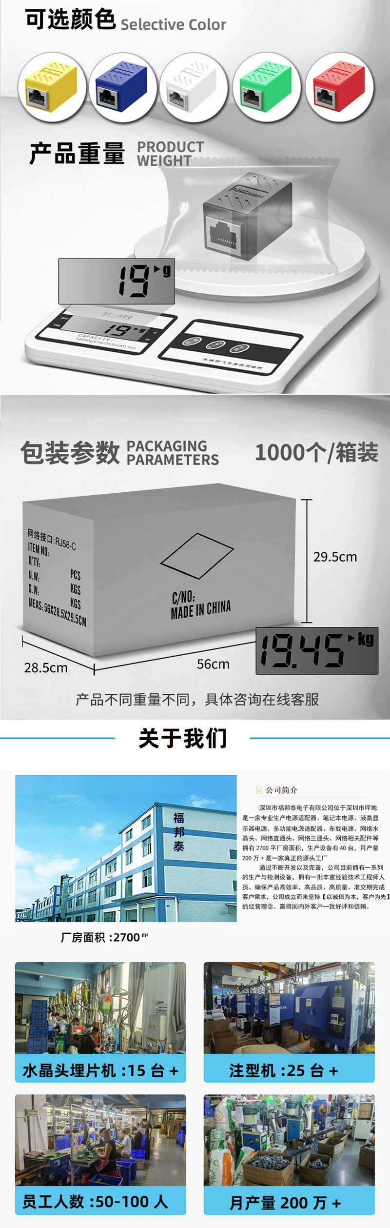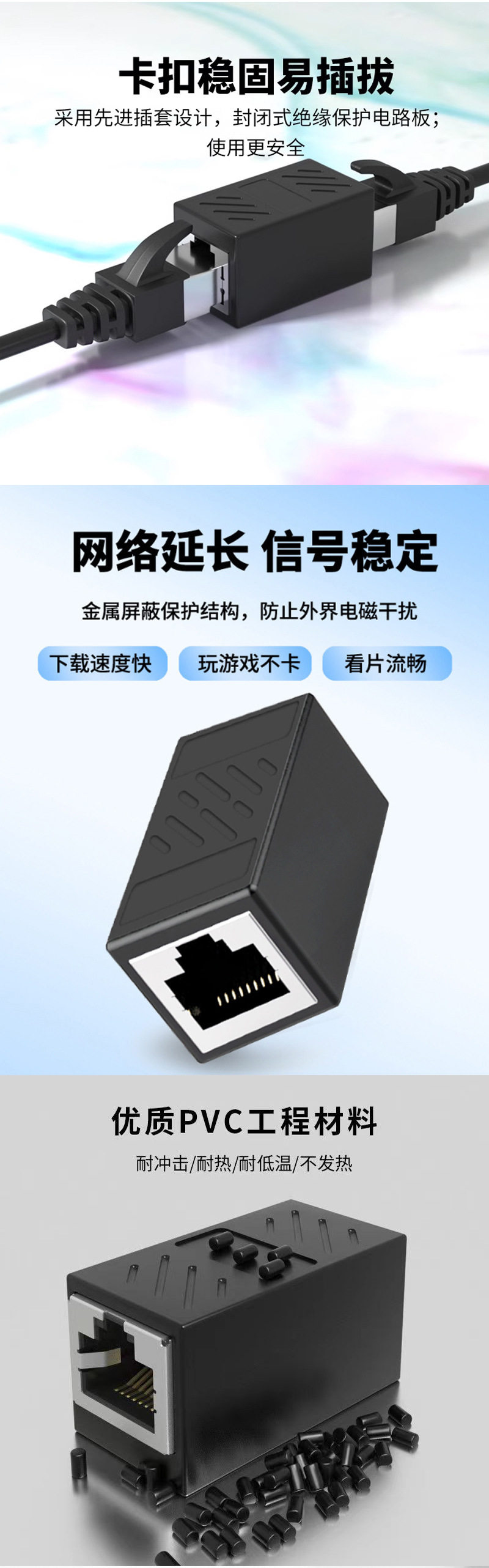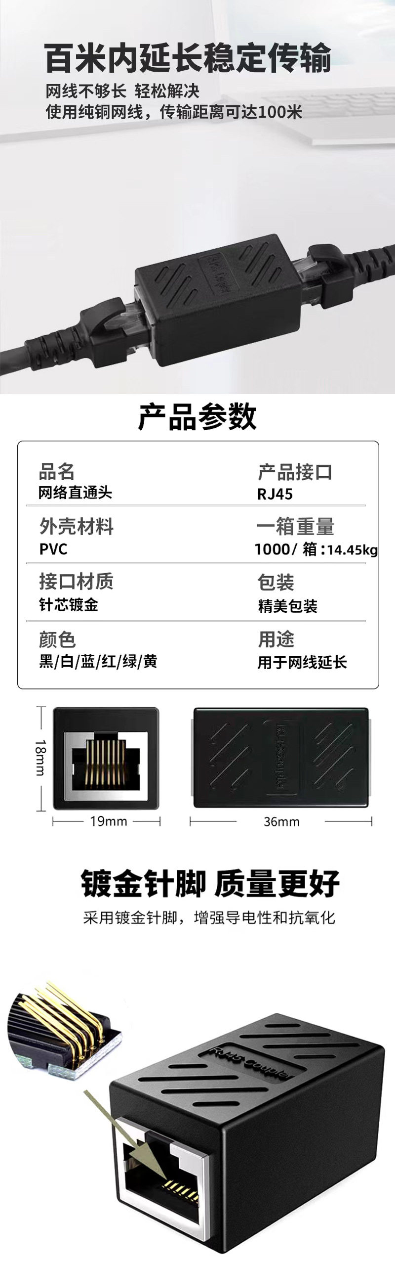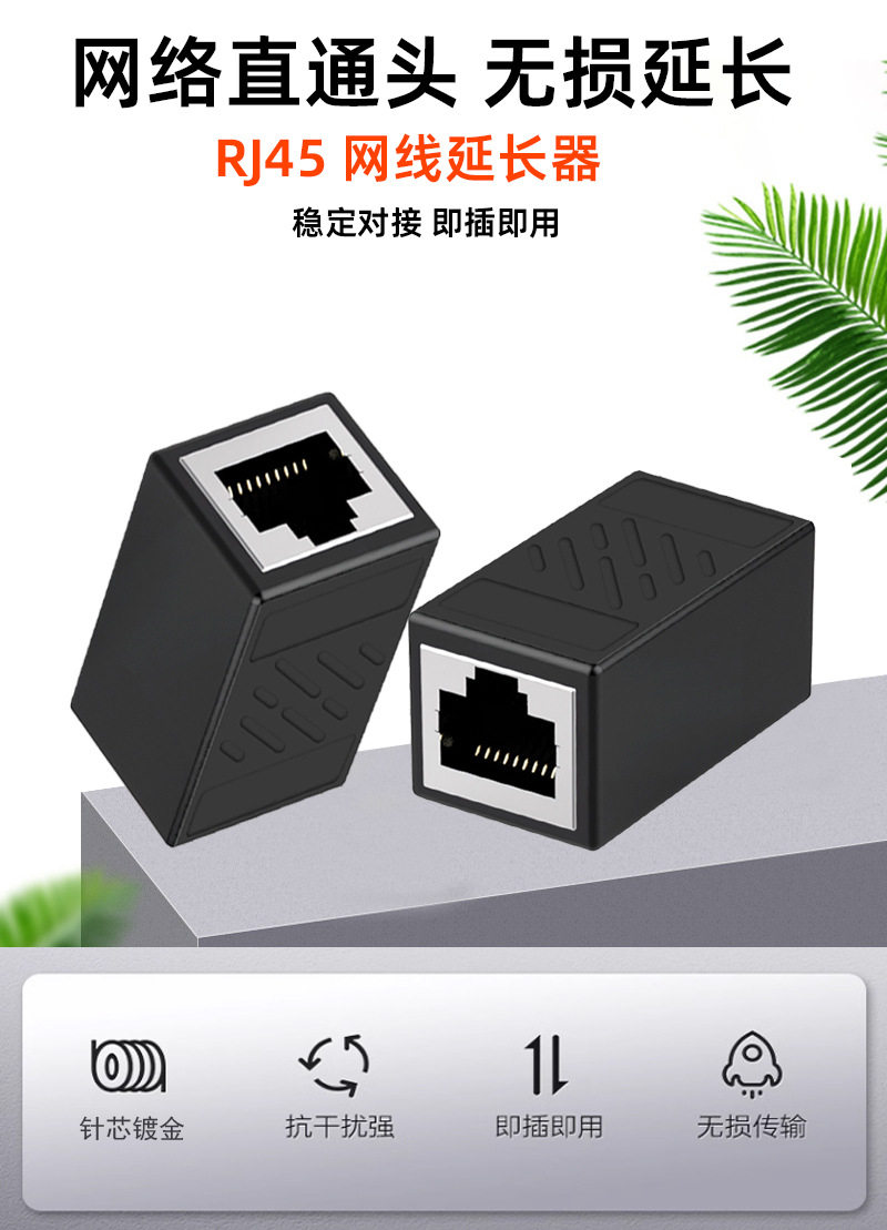 多颜色网络直通头RJ45网络对接头延长器8P8C双通头千兆网线对接器