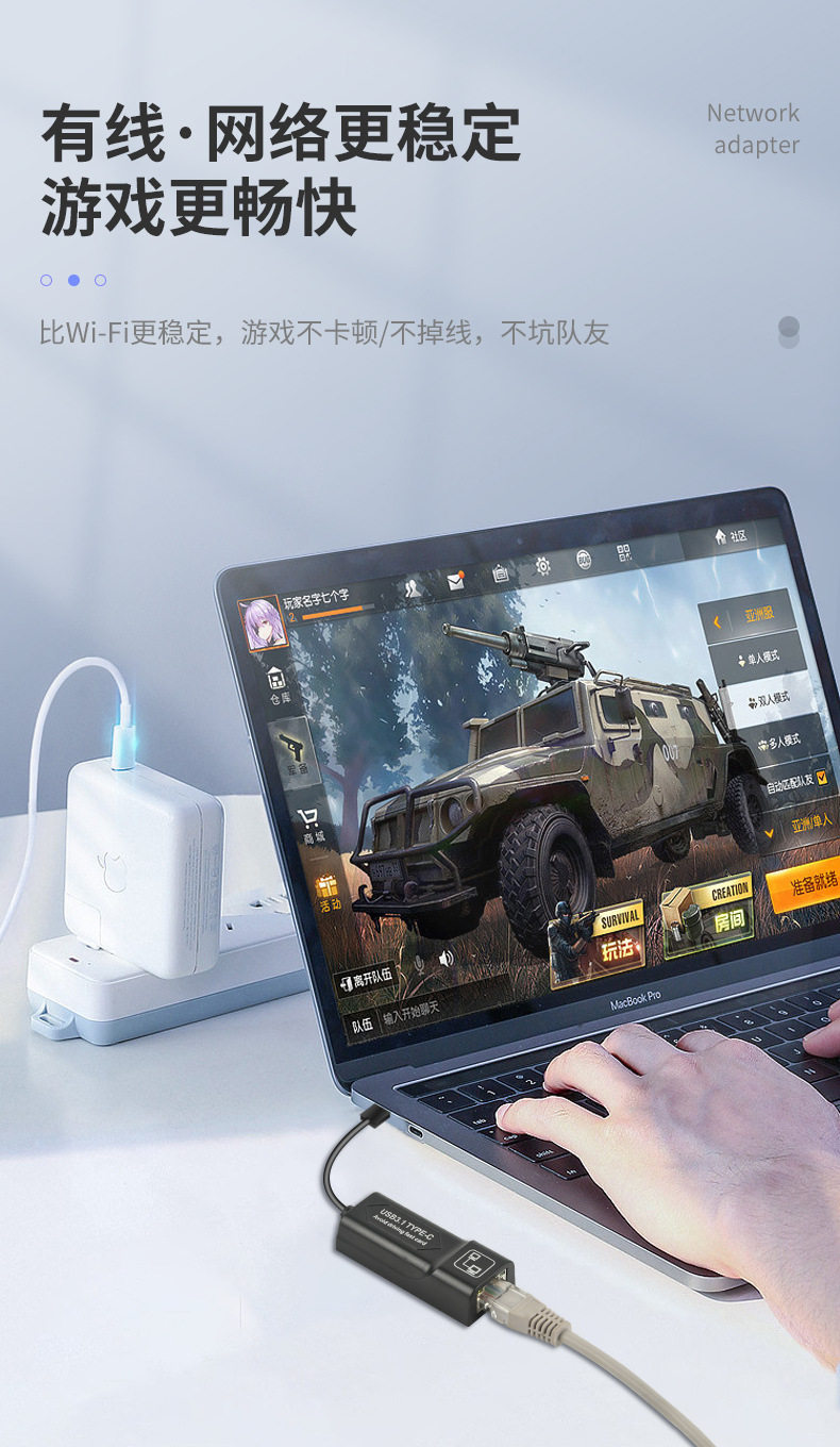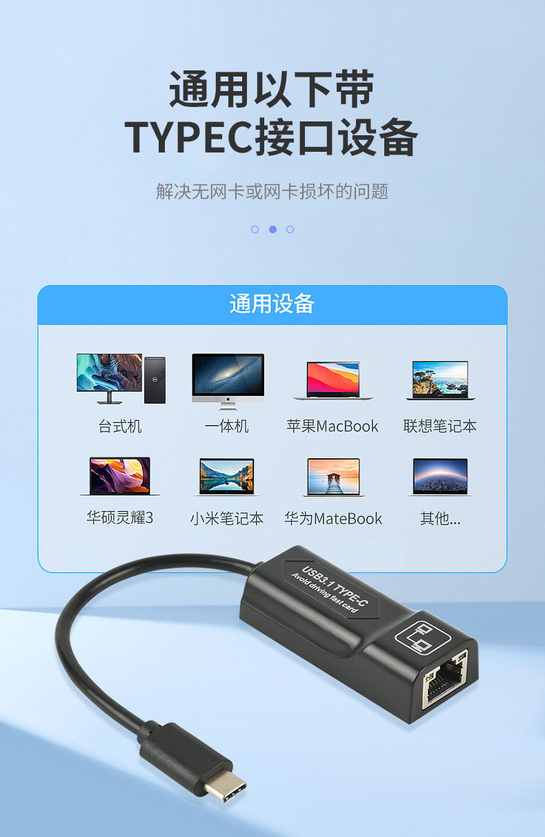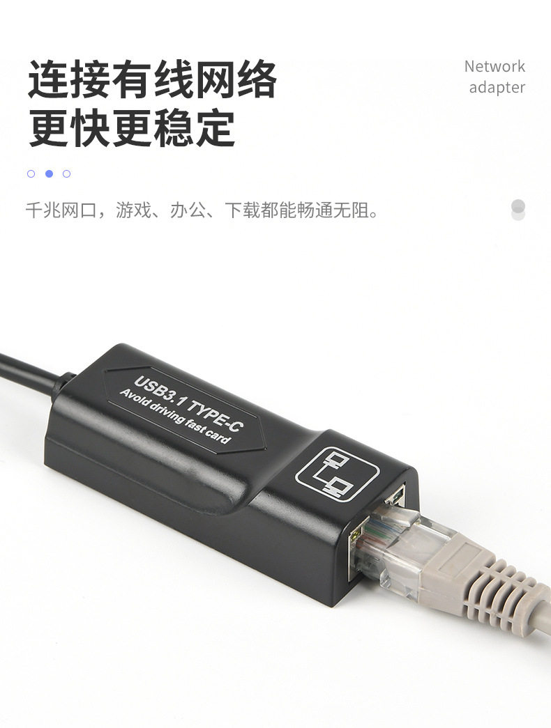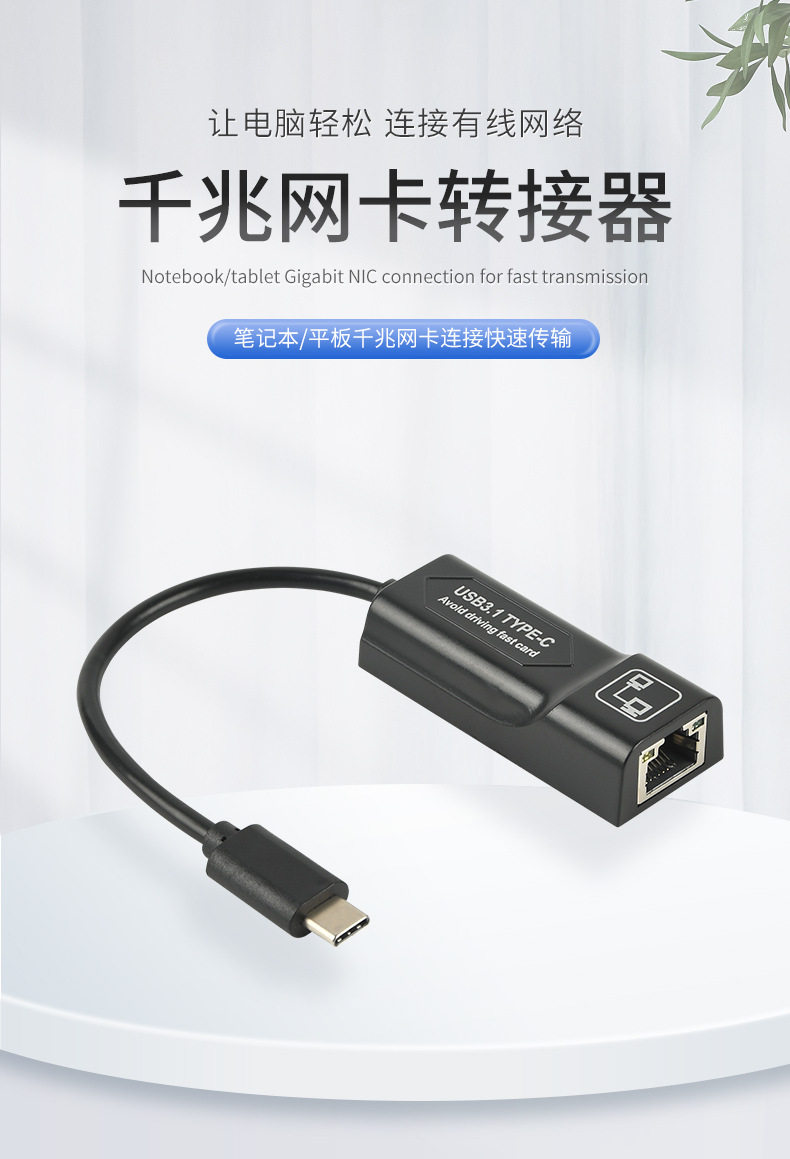 Type-C转RJ45千兆网卡USB3.1转有线网线转换器免驱即插即用连接器