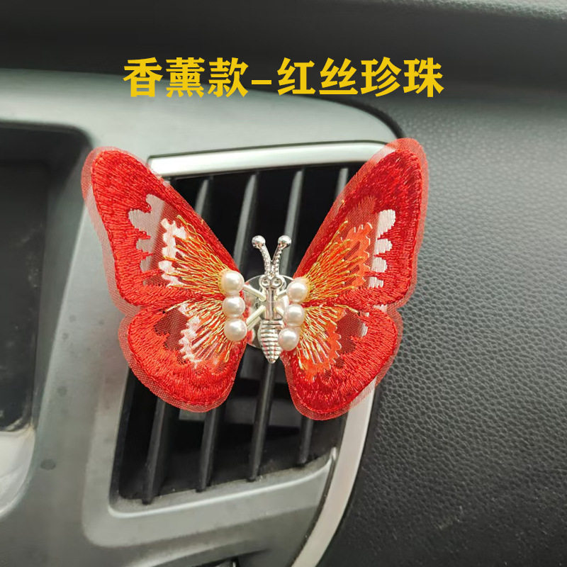 会动的刺绣蝴蝶汽车中控台出风口装饰车载小摆件治愈系车内装饰品