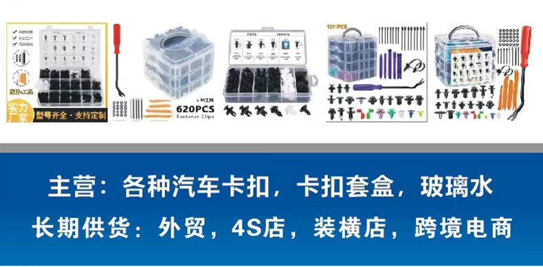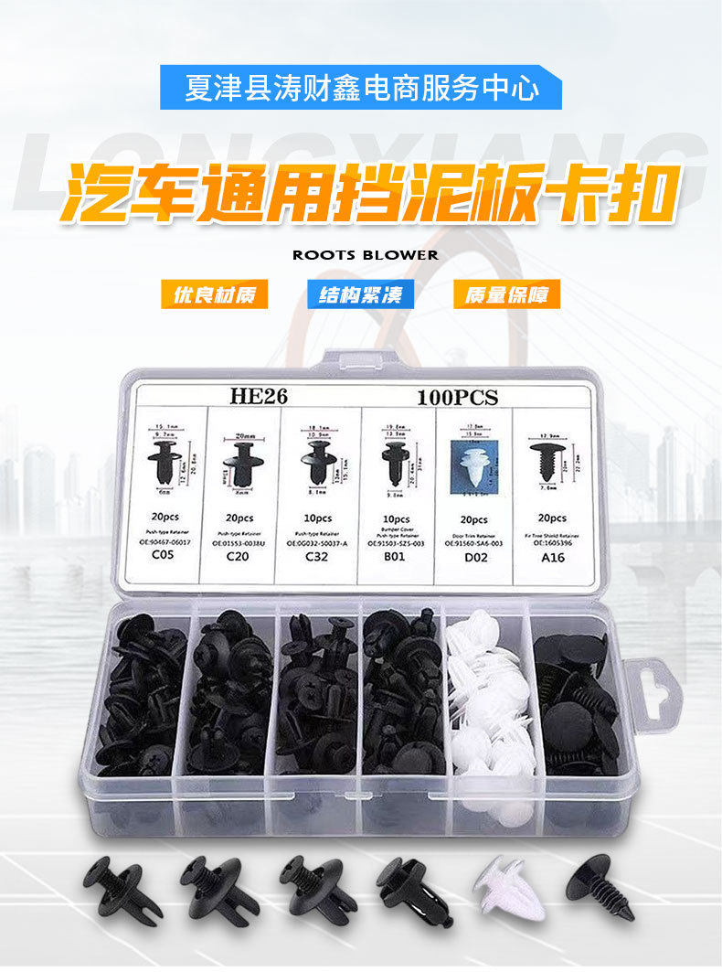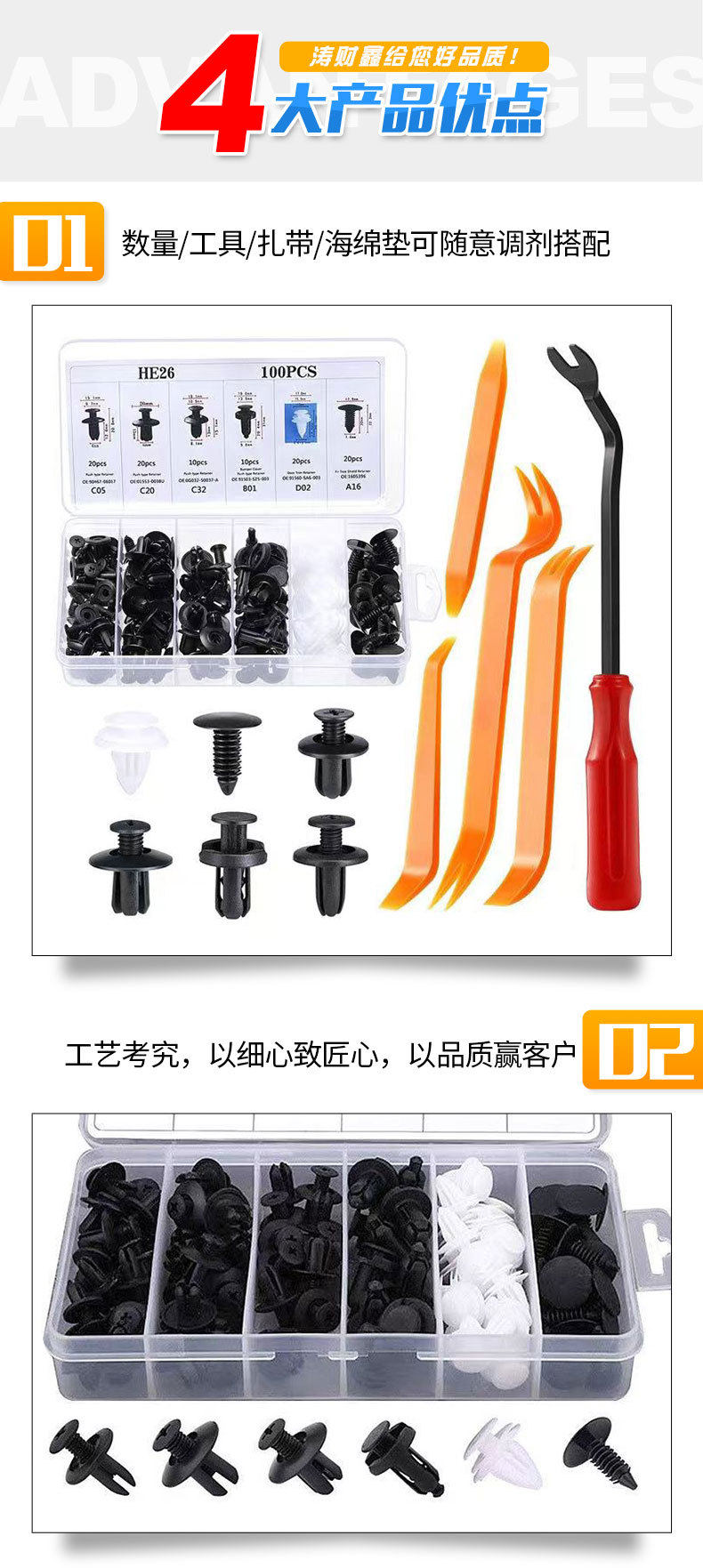 【跨境外贸】100pcs盒装卡扣汽车膨胀螺丝塑料卡子门板挡泥板套盒