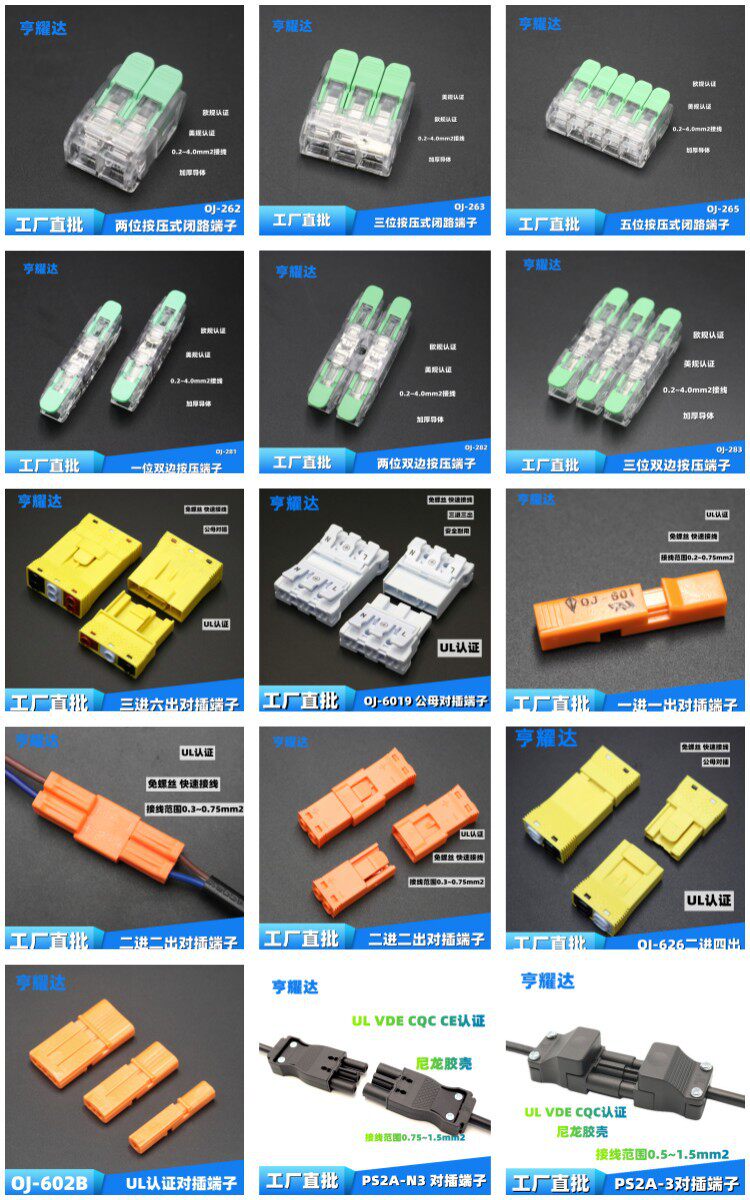 美规OJ-281快速按压端子1进1出免螺丝接线器硬软线导线接线器