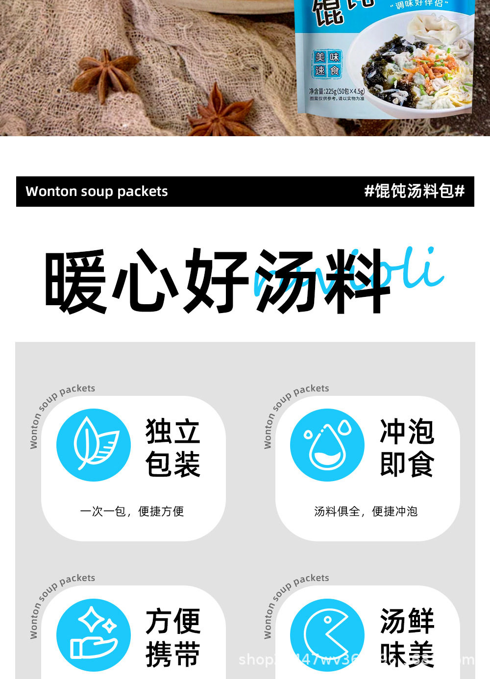 【抖音同款】馄饨汤料包水饺云吞面速食汤整箱正宗混沌汤料包小包