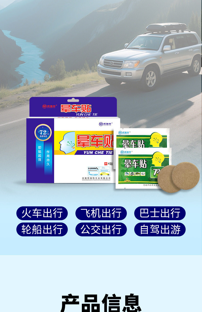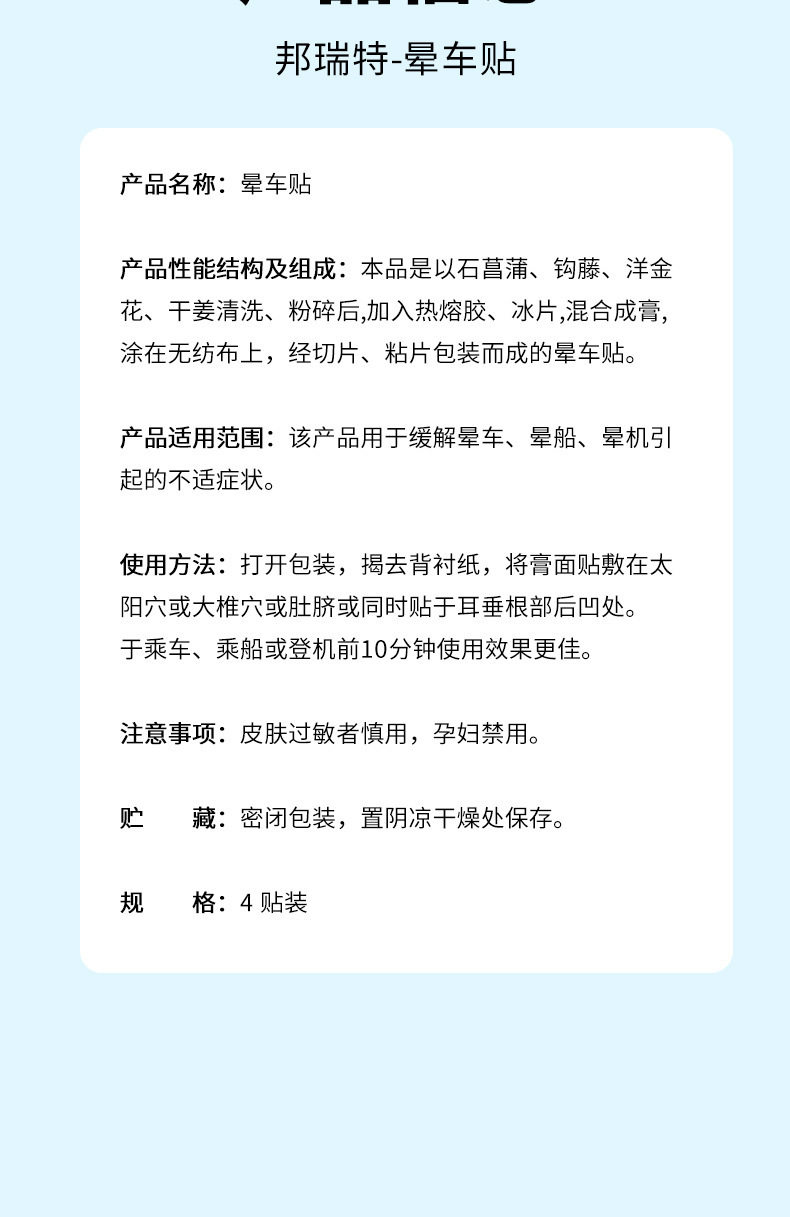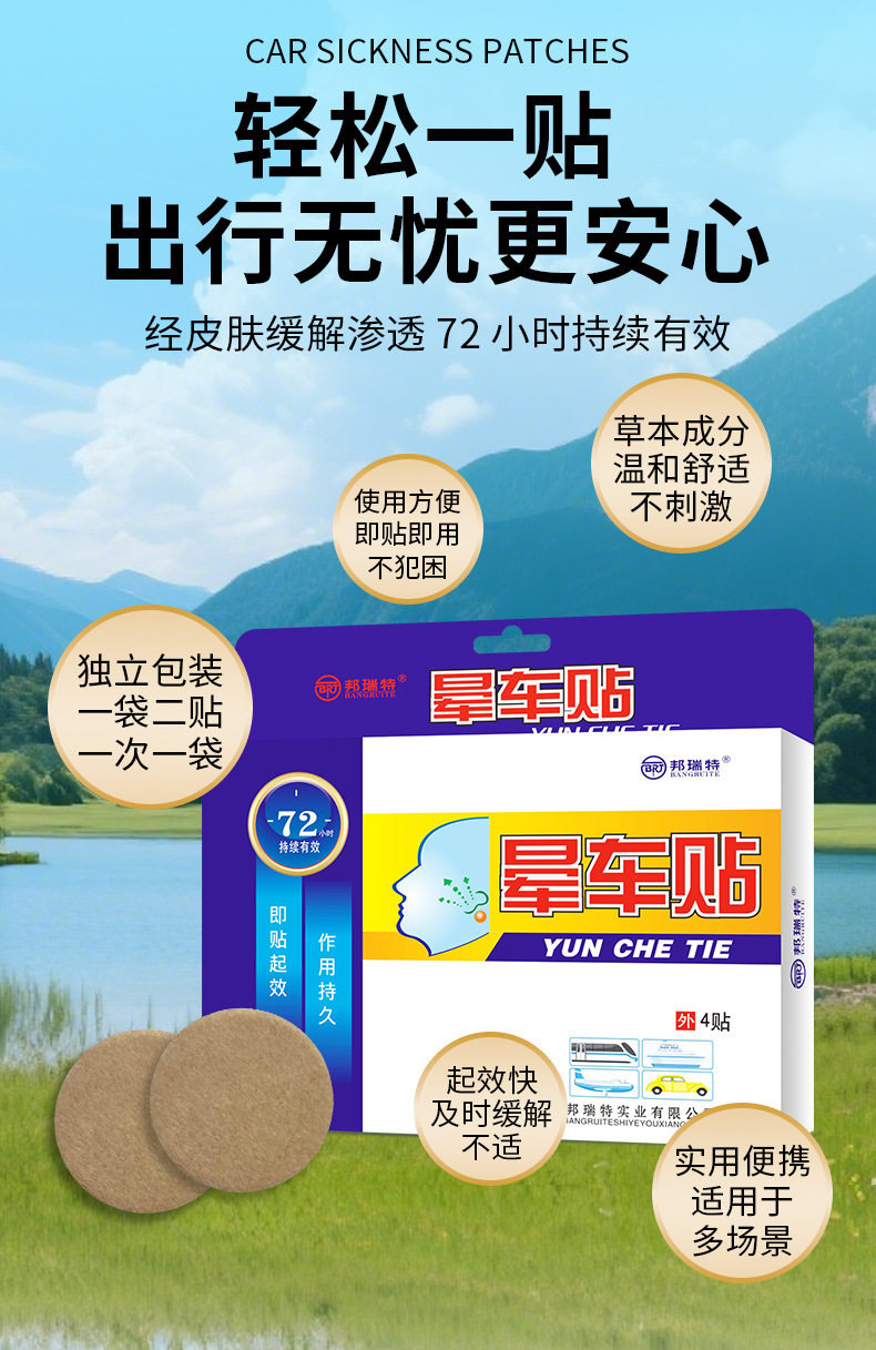 厂家直供日用缓解晕船身体贴晕机天然植物提取安全邦瑞特晕车盒装