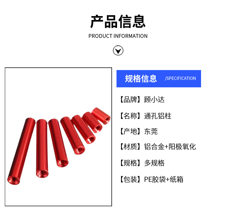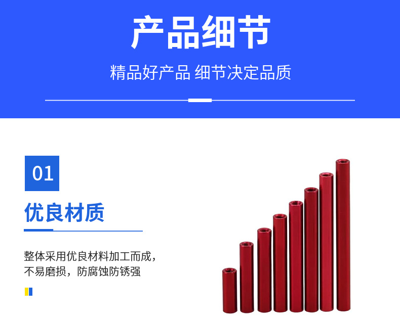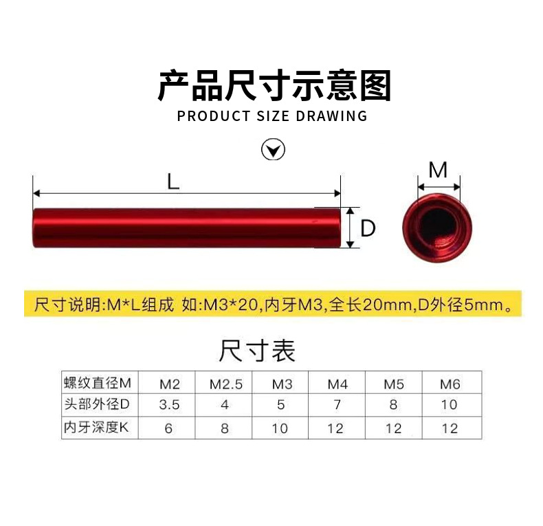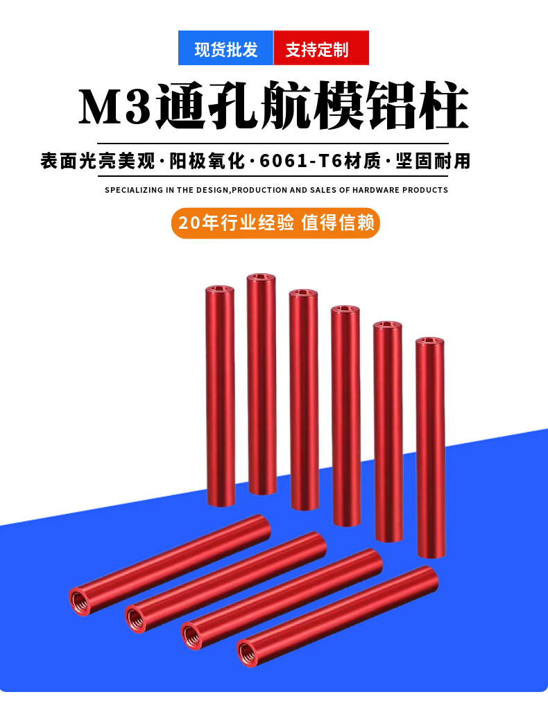 彩色通孔超轻模型飞机身铝棒双头网纹铝柱内牙M3*35mm连接柱