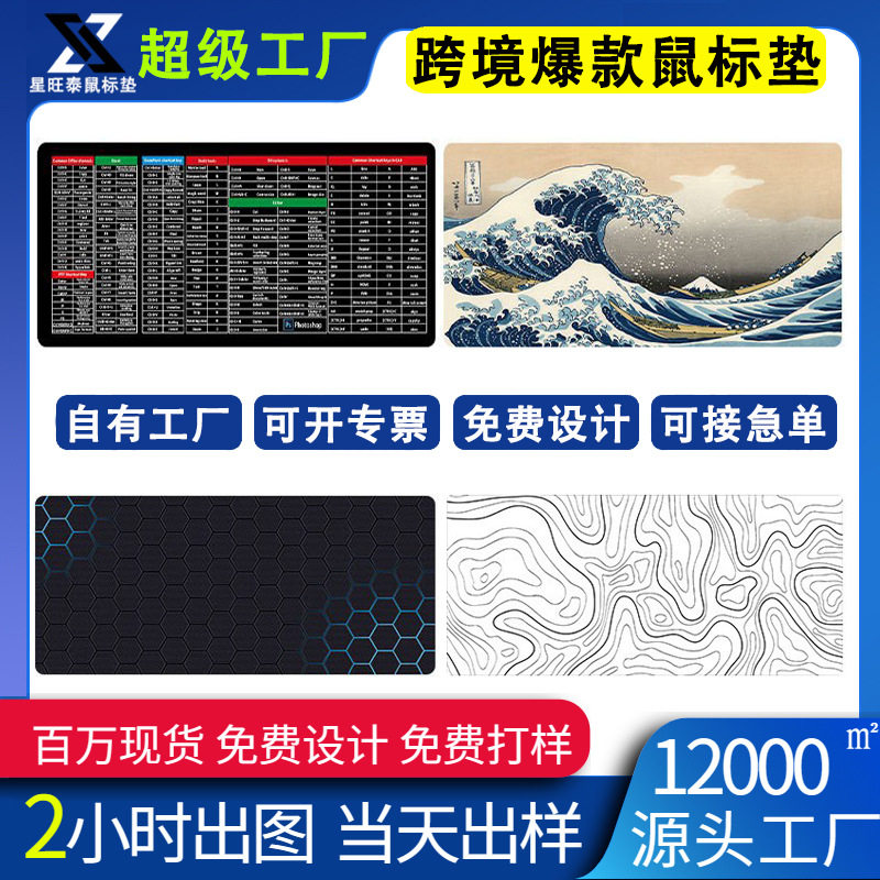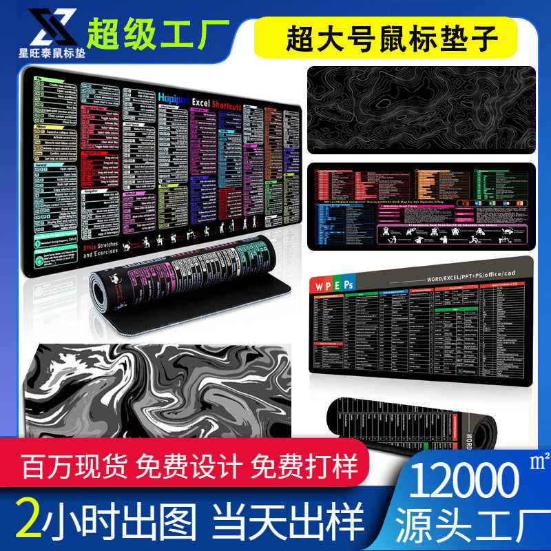 mousepad英文快捷键鼠标垫超大加厚海浪鼠标垫跨境垫子定制桌垫