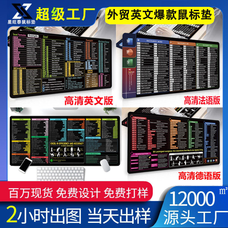 西班牙语英文德语鼠标垫快捷键定制笔记本跨境电脑办公室防滑桌垫