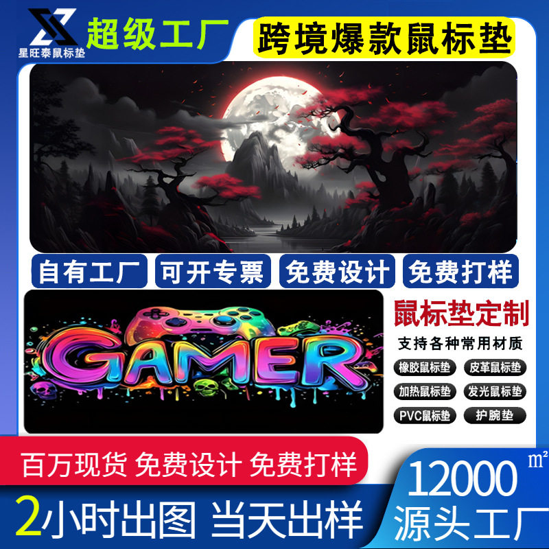 电竞鼠标垫批发大号电脑办公游戏周边键盘垫子锁边加长桌垫定 制