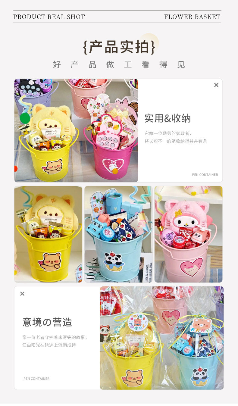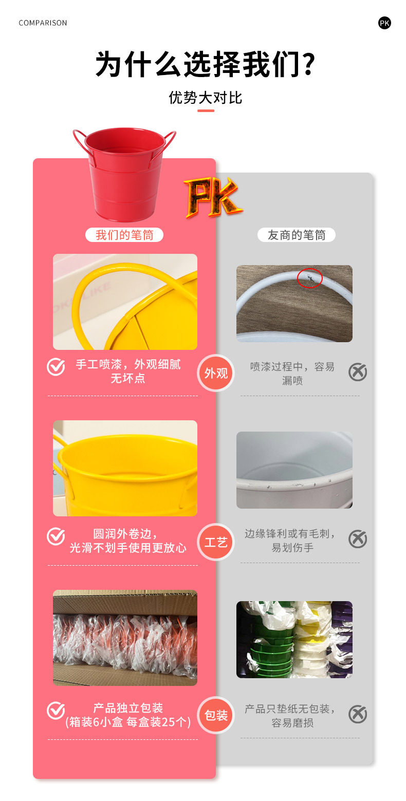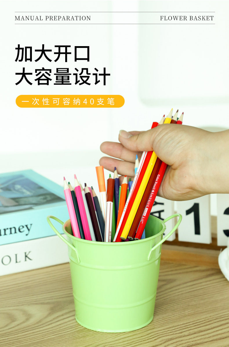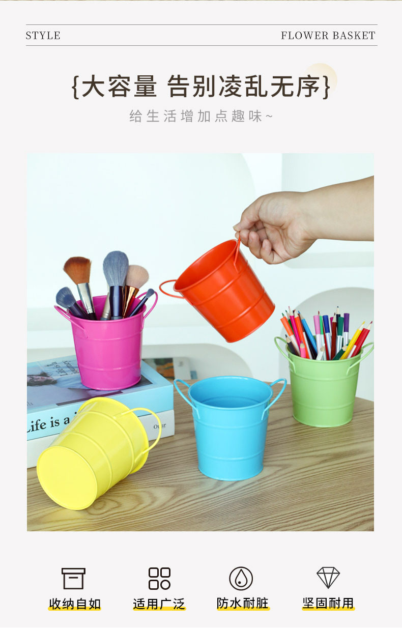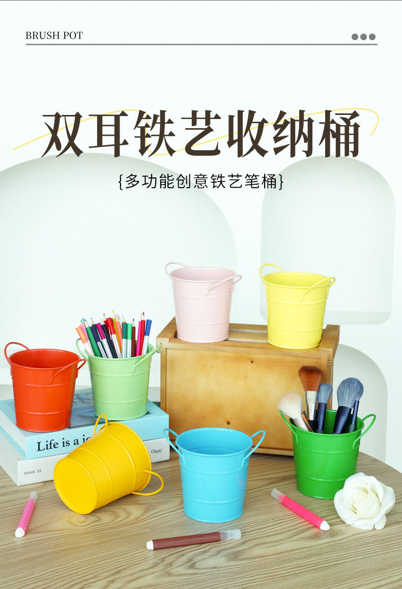 简约ins风铁艺笔筒美式铁桶学生文具收纳桶办公桌面创意笔筒