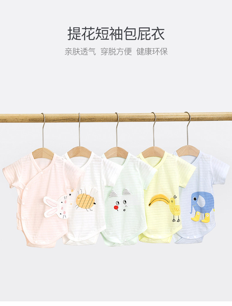 婴儿连体衣夏季薄款三角哈衣短袖新生衣服纯棉男女包屁衣宝宝夏装