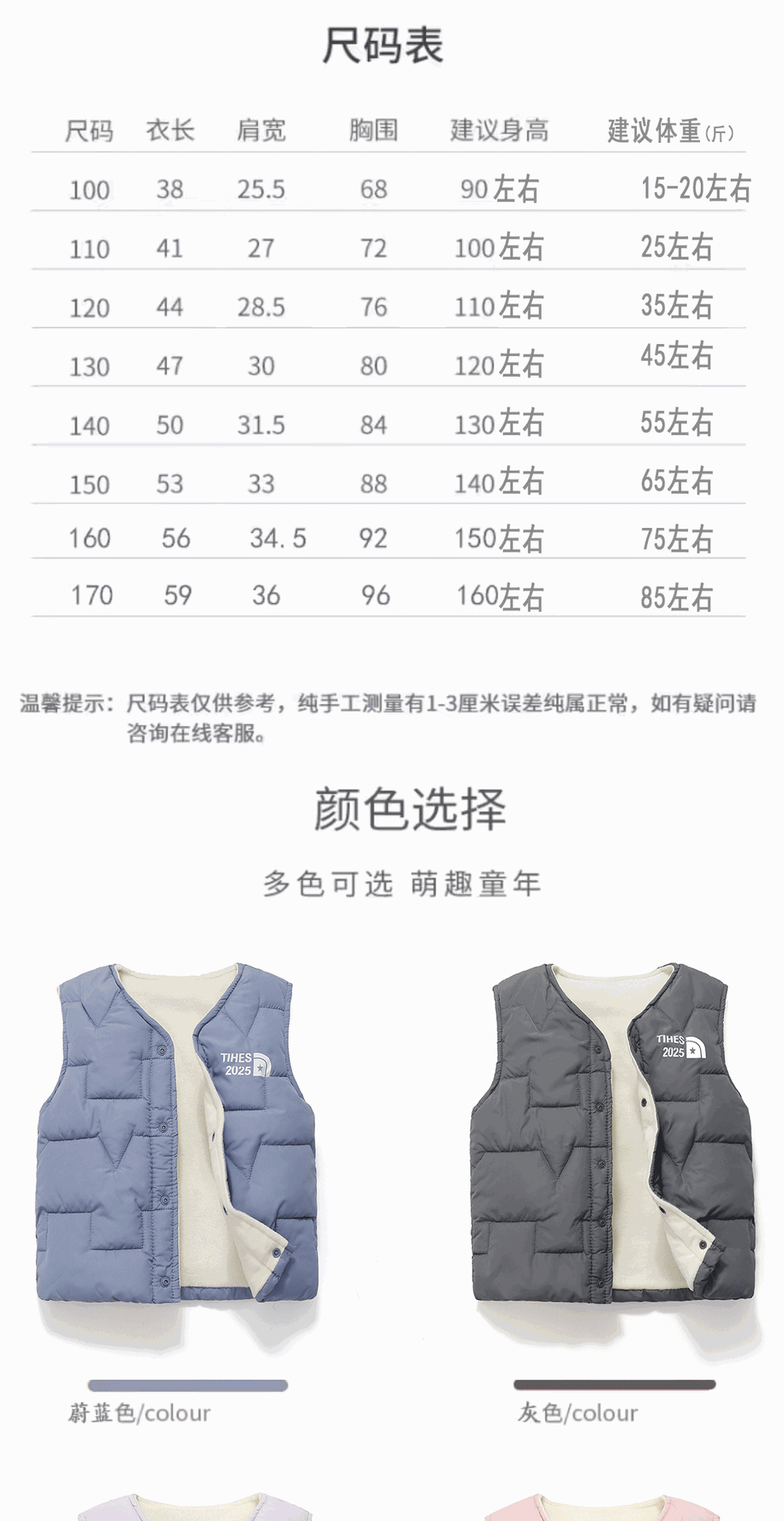 2025秋冬季新款儿童羽绒棉马甲男女童宝宝加绒棉背心小中大童坎肩