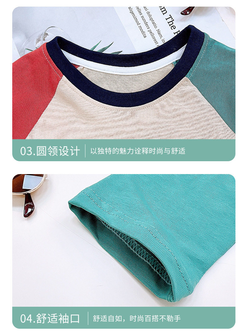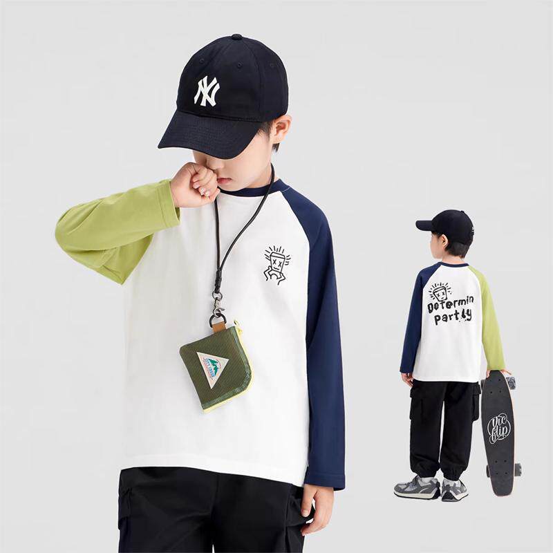 儿童纯棉T恤春秋季男童插肩长袖休闲中大童卫衣上衣100%棉