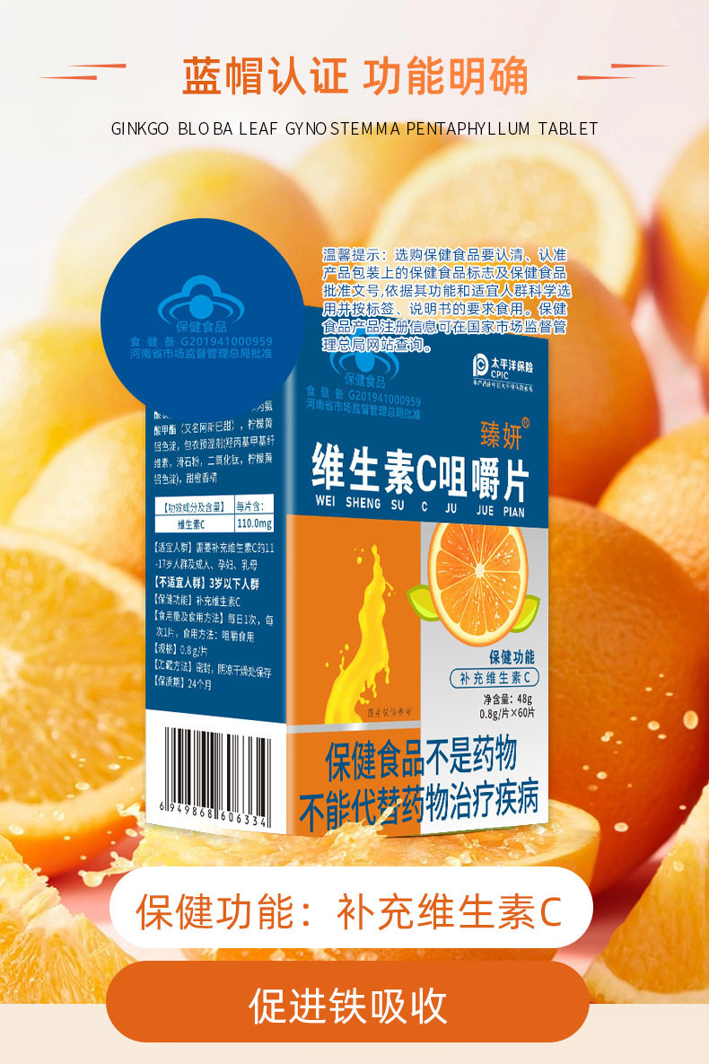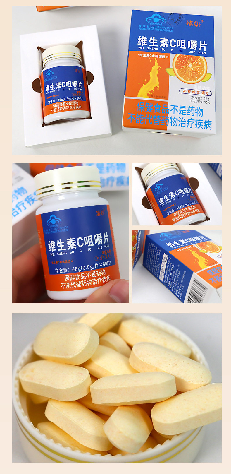 维生素C咀嚼片蓝帽保健品维生素C水果味补充VC含片药店批发零售vc