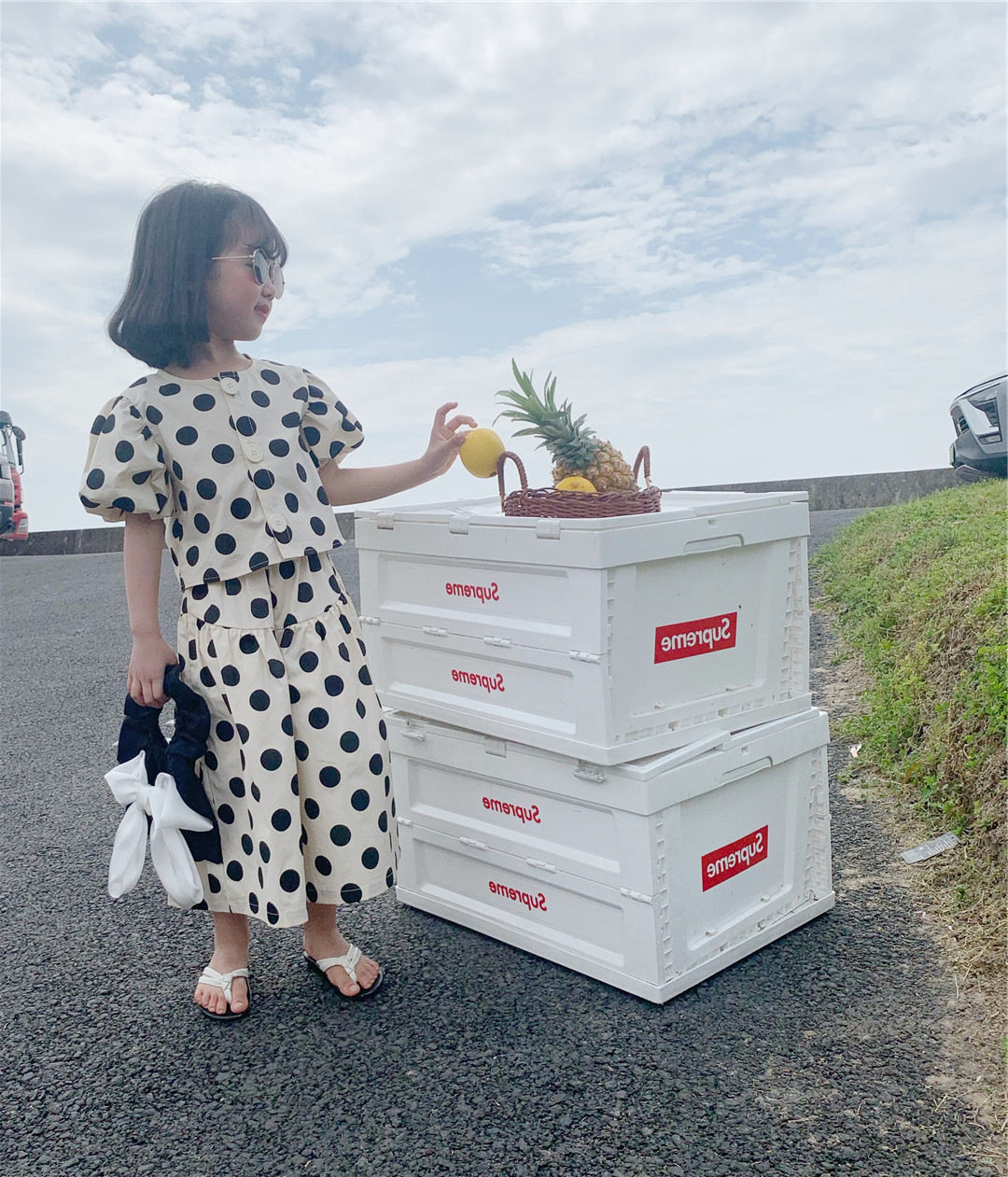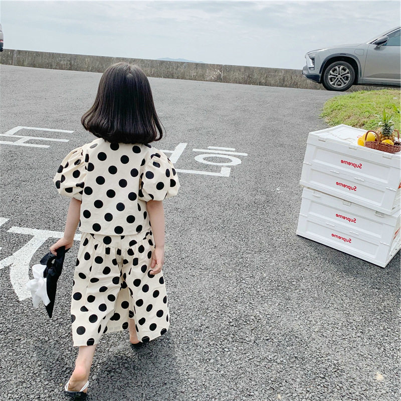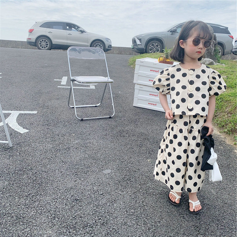 杰拉童装女童波点套装2025夏季新款儿童韩版短袖上衣阔腿裤两件套
