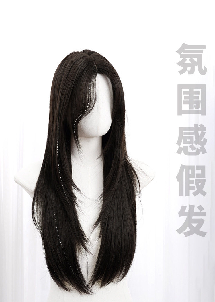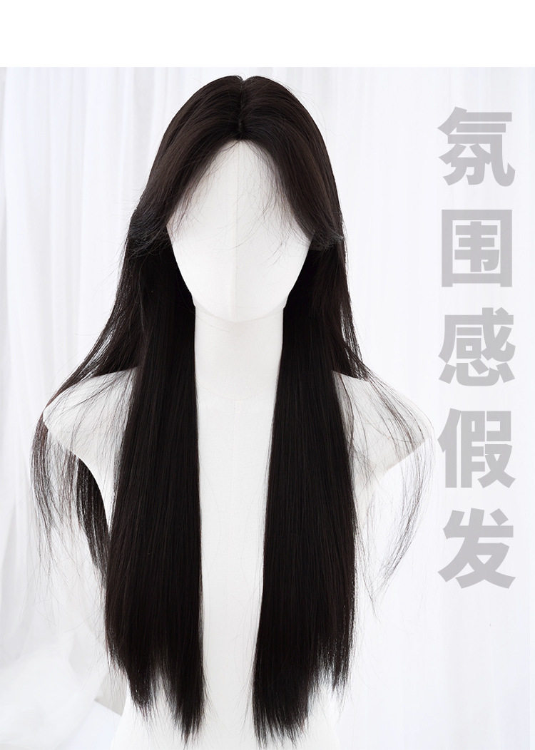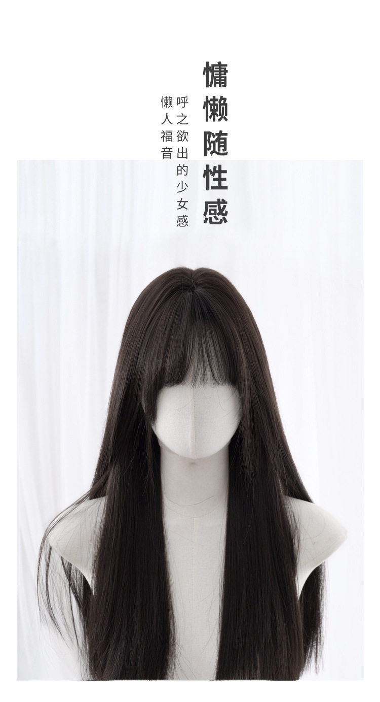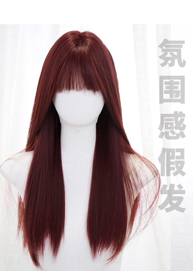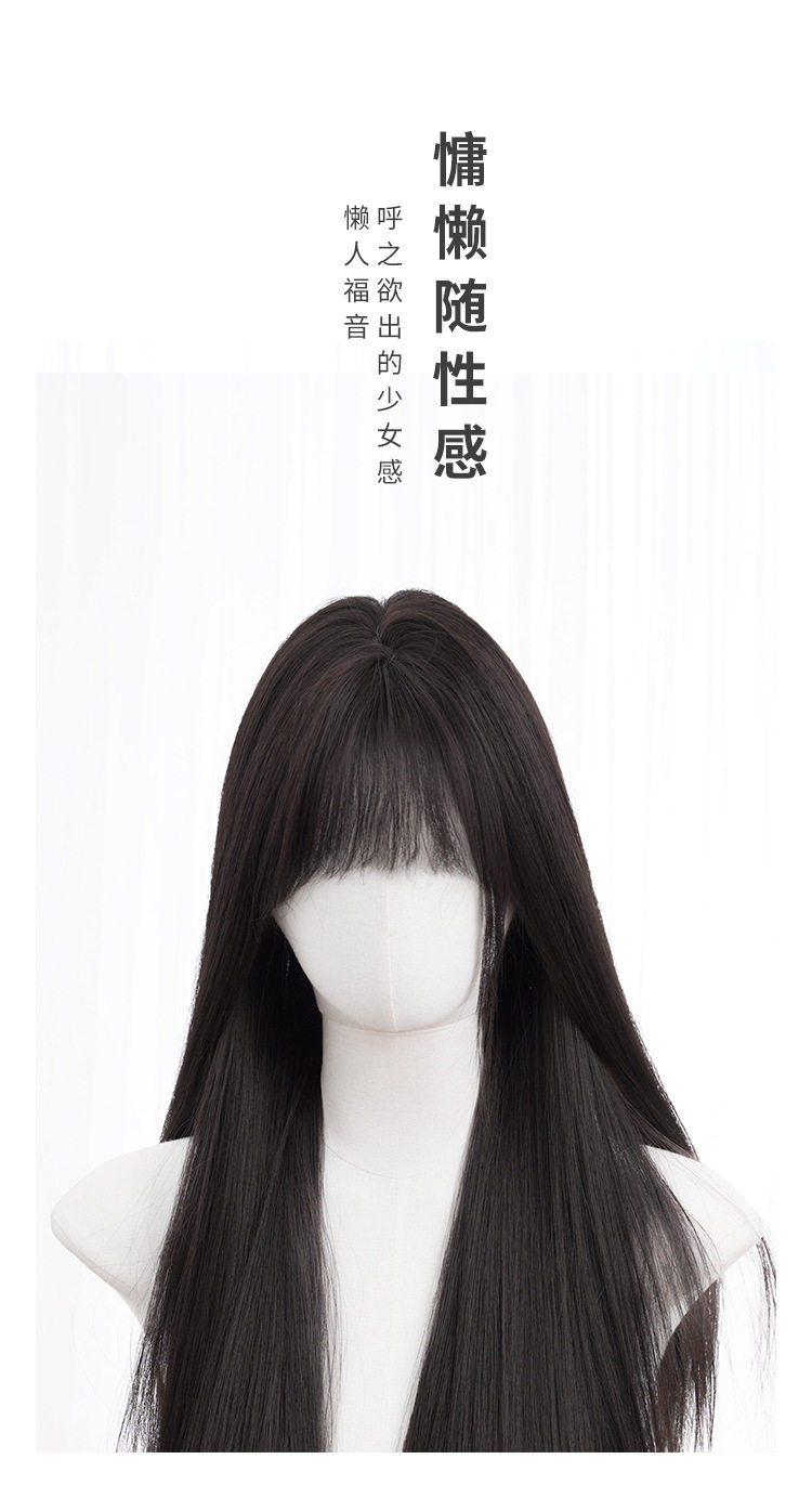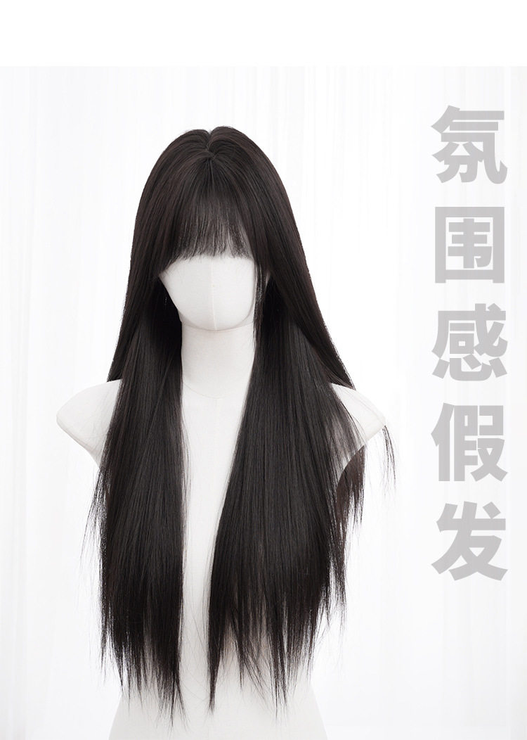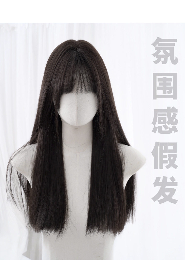 秋实假发女批发跨境日常网红自然气质长直发逼真齐刘海全头套式