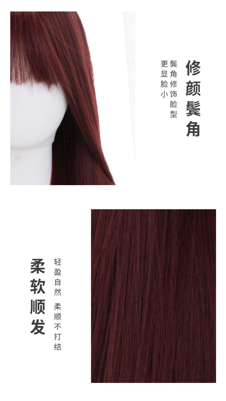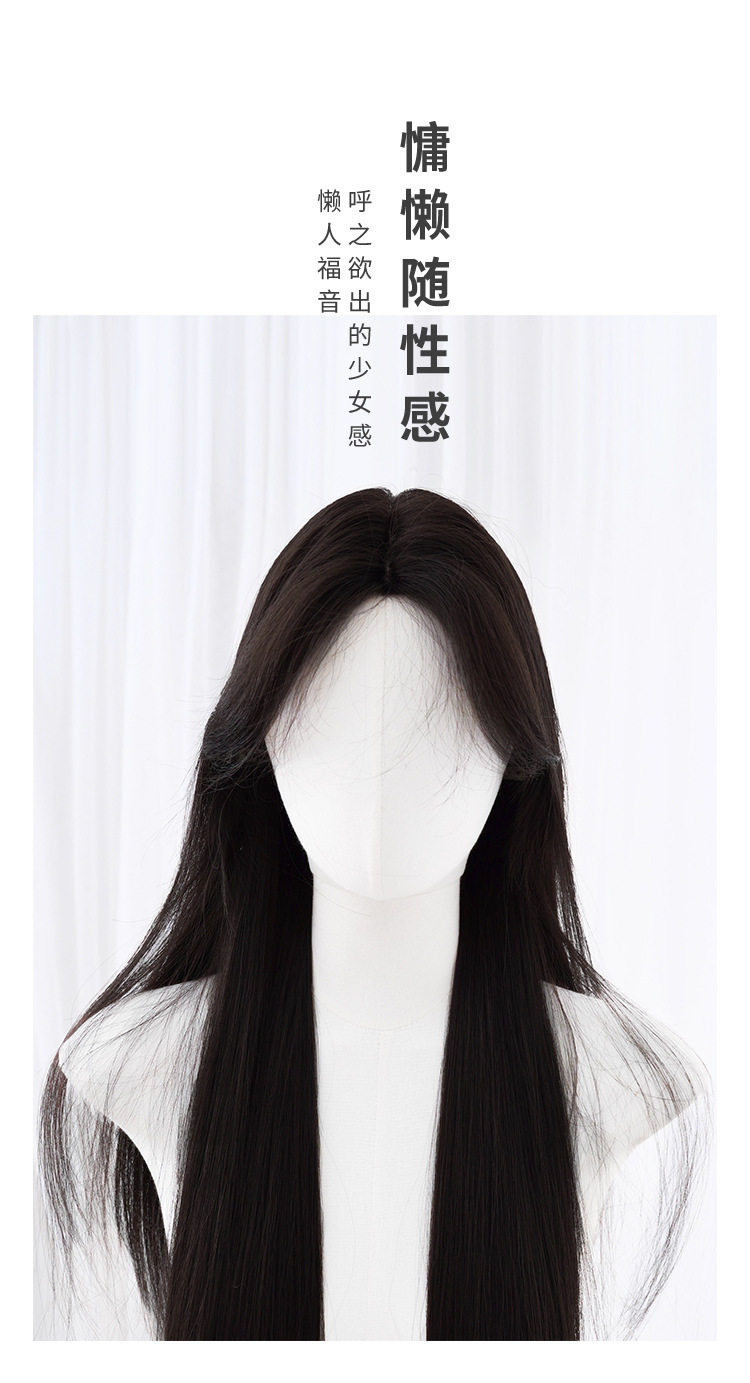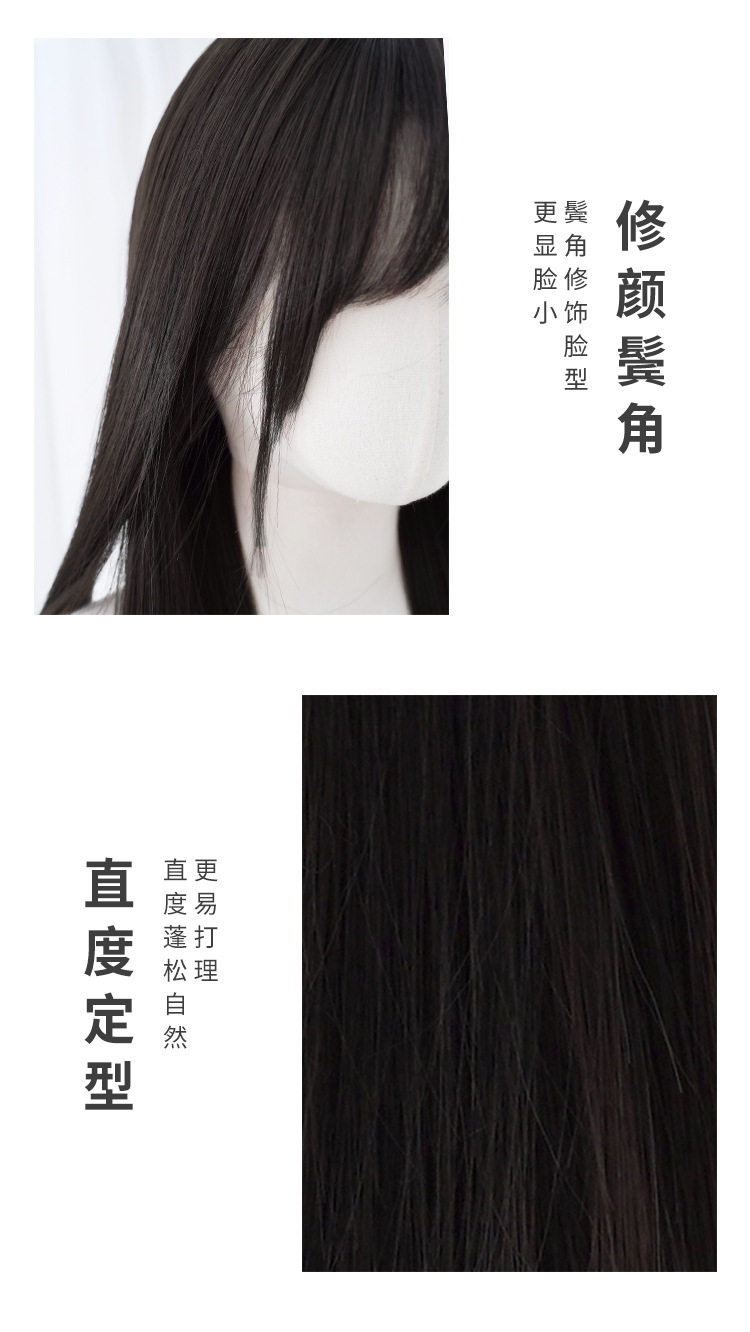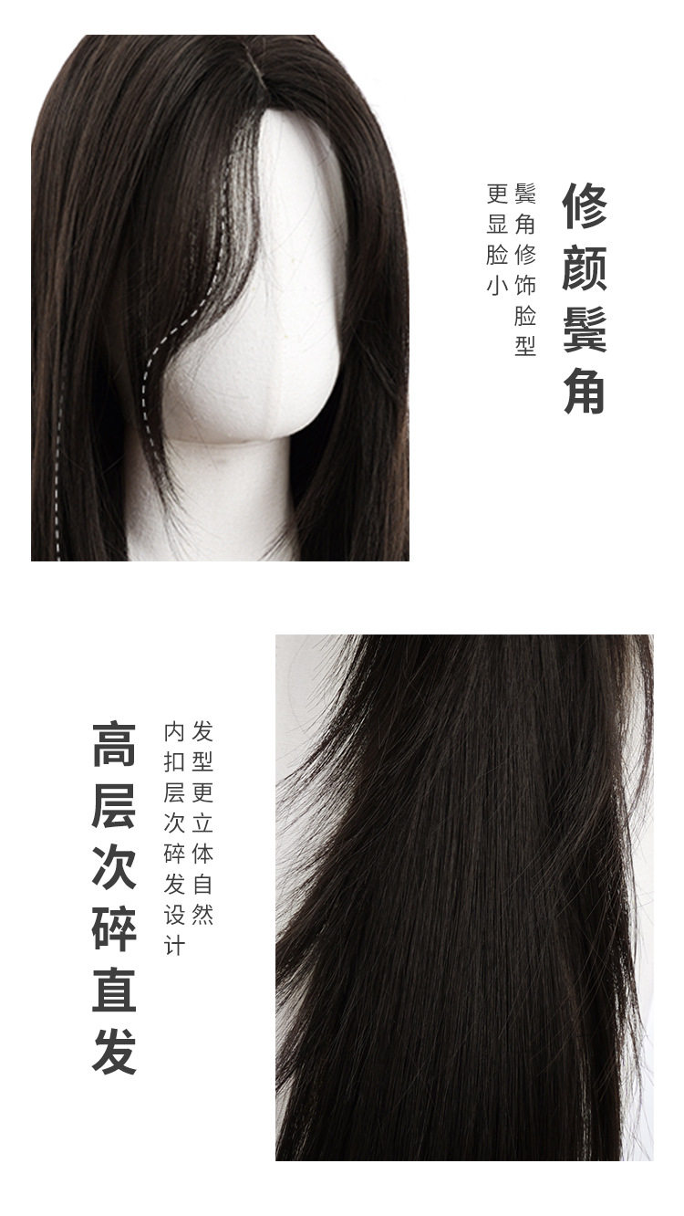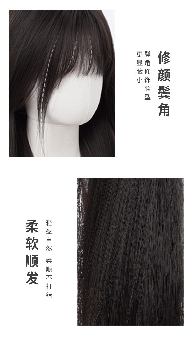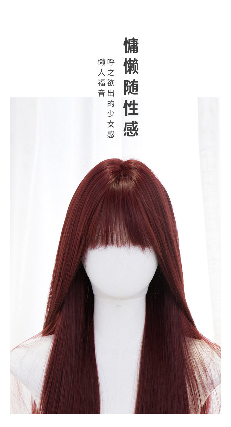 秋实假发女批发跨境日常网红自然气质长直发逼真齐刘海全头套式