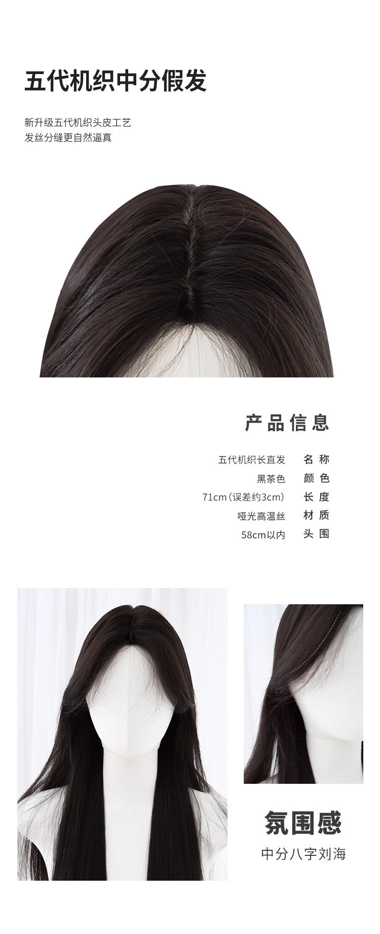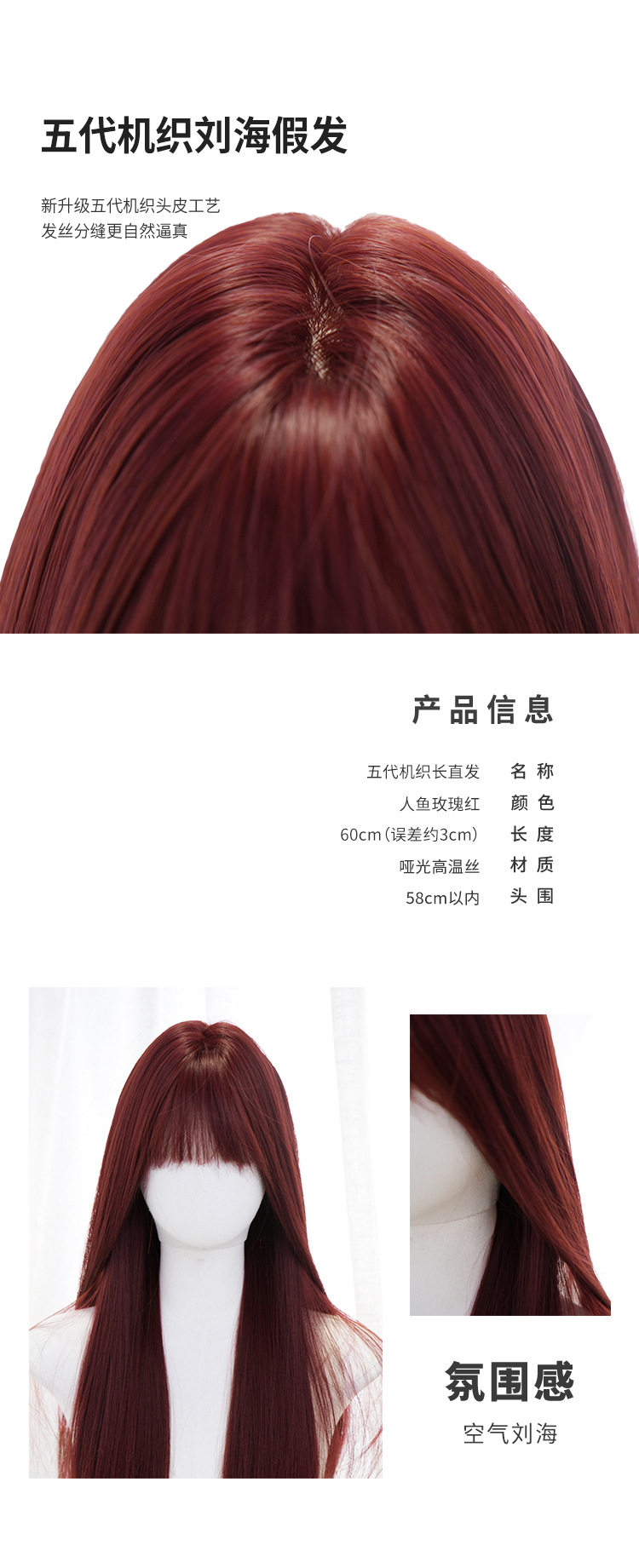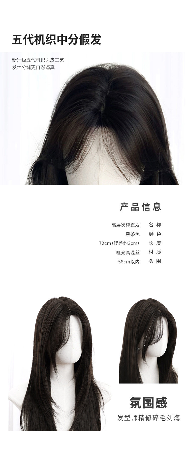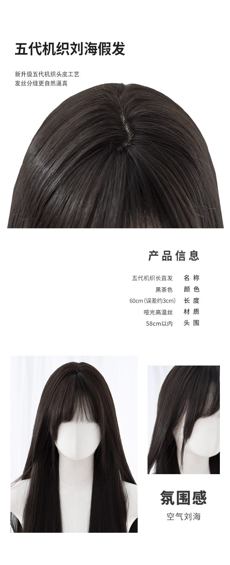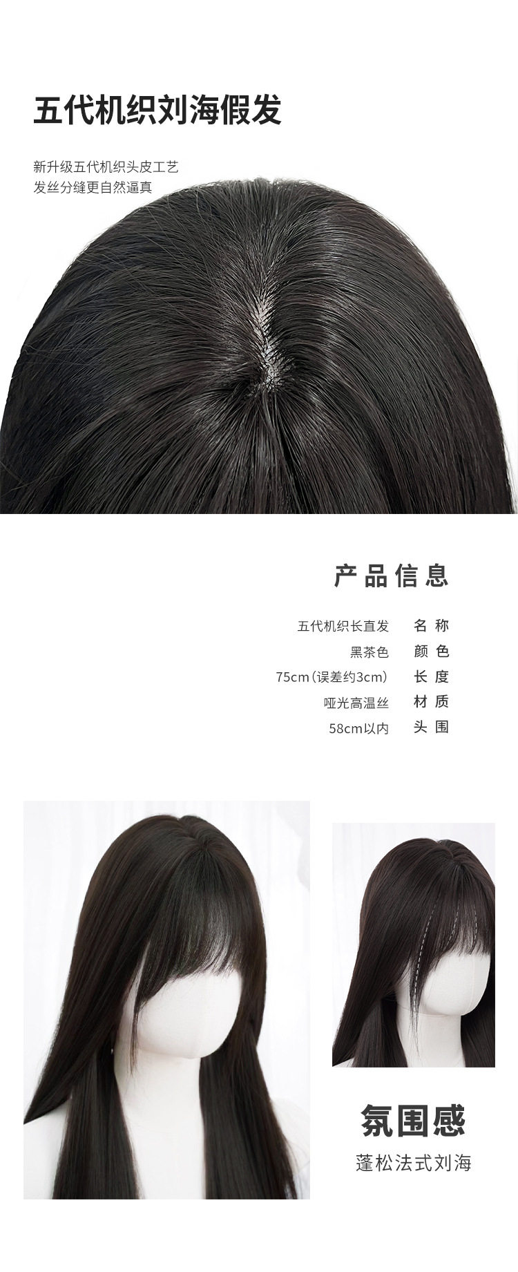 秋实假发女批发跨境日常网红自然气质长直发逼真齐刘海全头套式