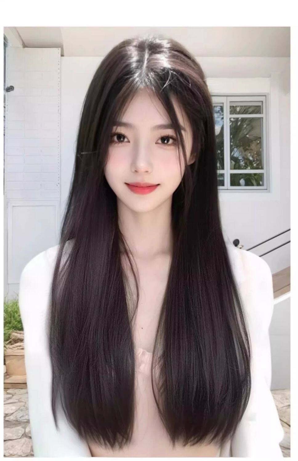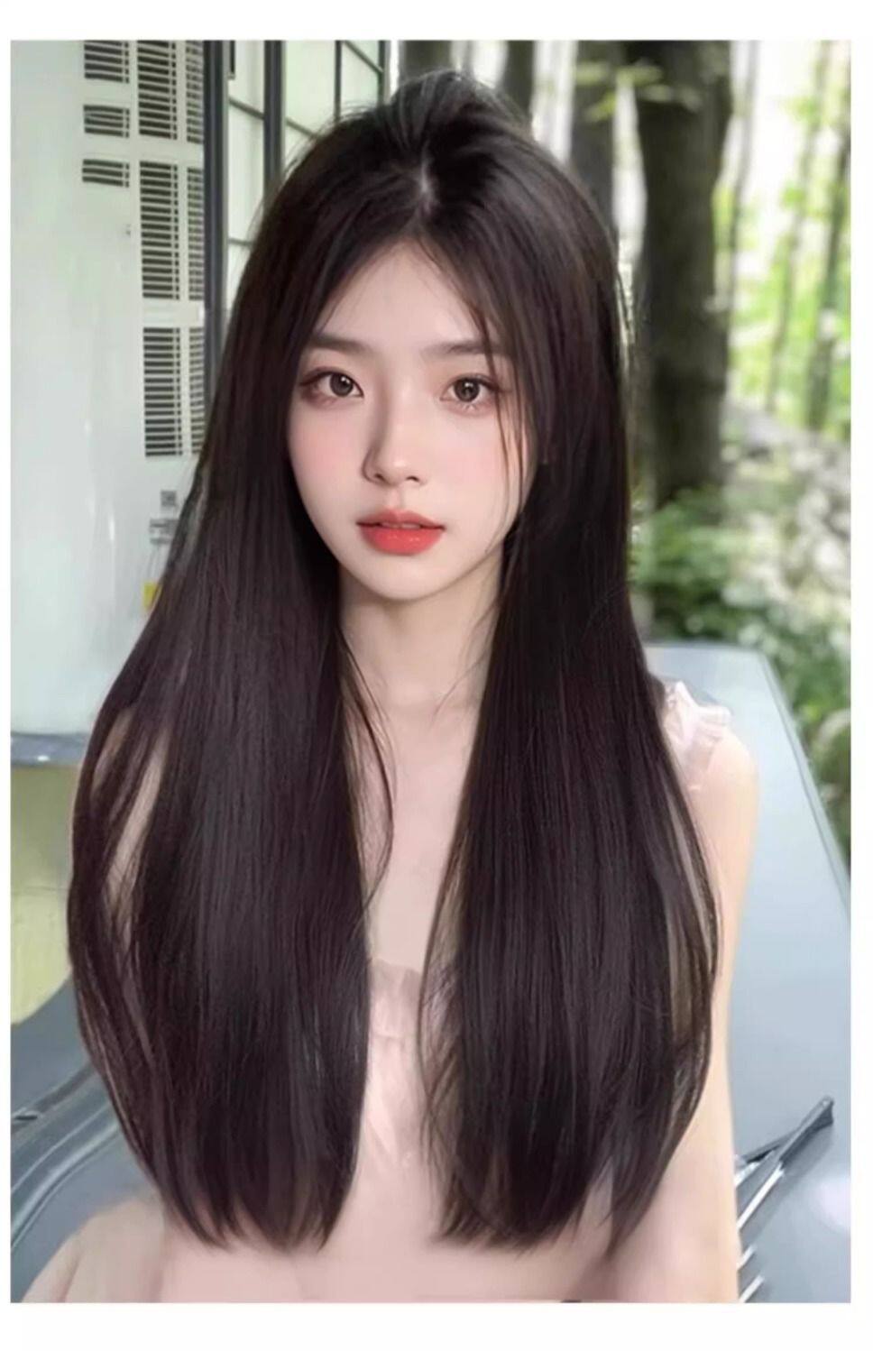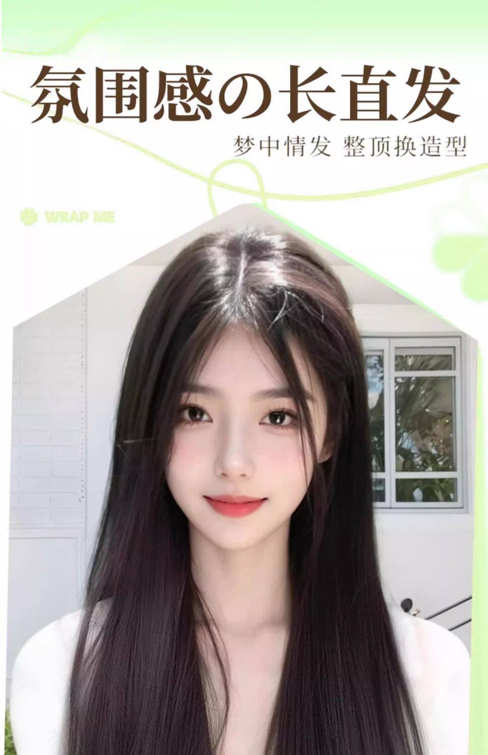 蕾丝假发女黑色中分八字刘海式前额蕾丝长直发时尚整顶全头套假发