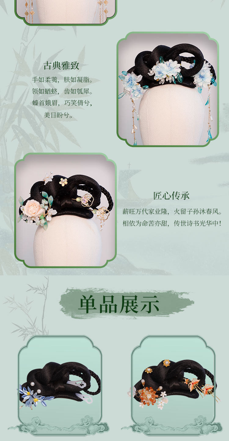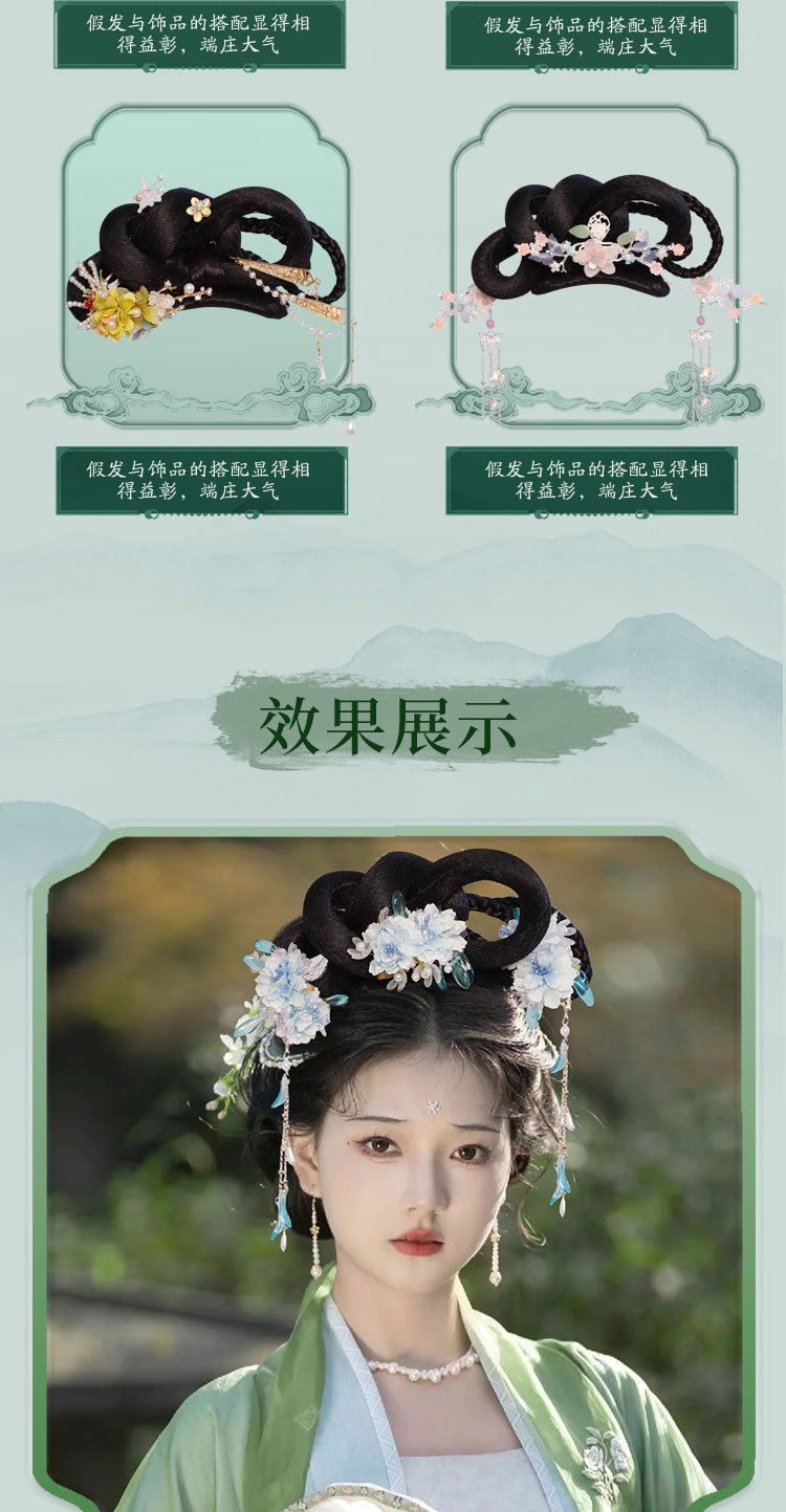 古装百搭唐风发髻全发丝假发汉服明制发髻软底新手懒人包饰品组合