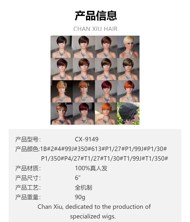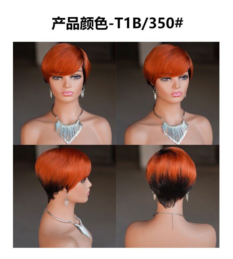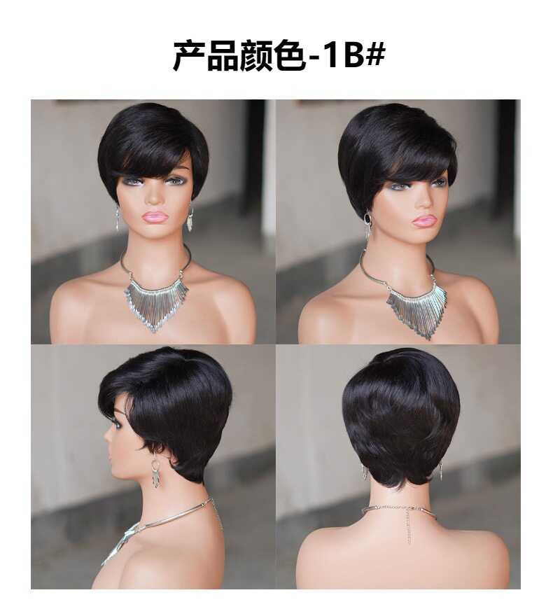 潺秀非洲外贸真人发假发短发全机制头套humanhair Pixie cut wigs