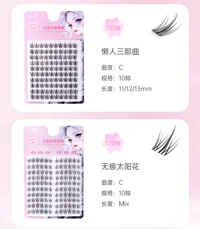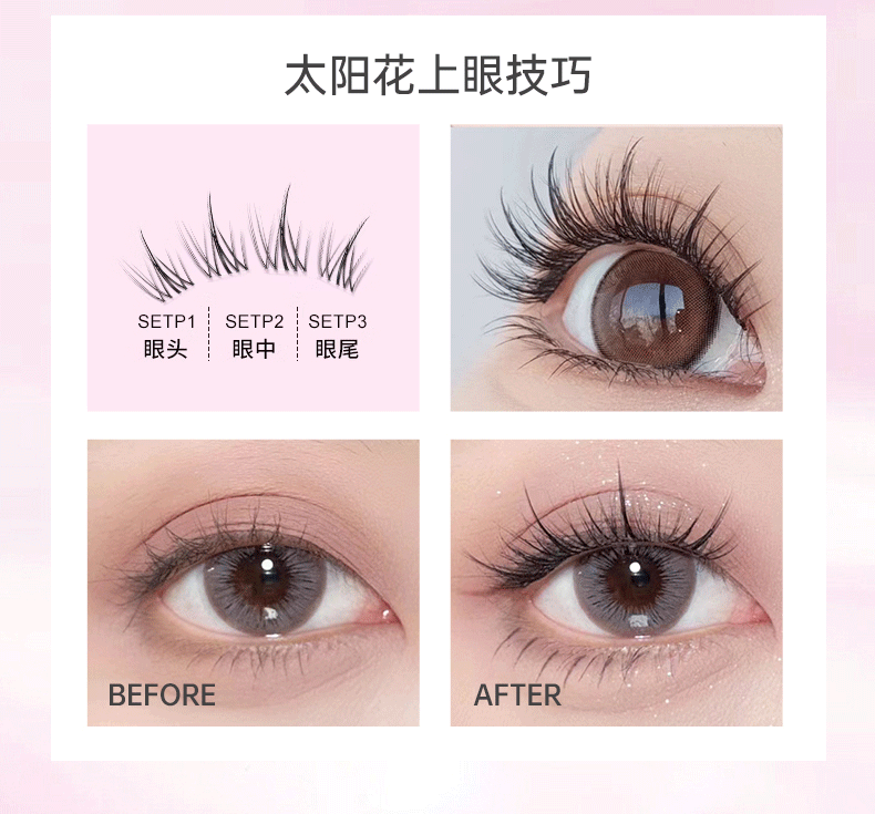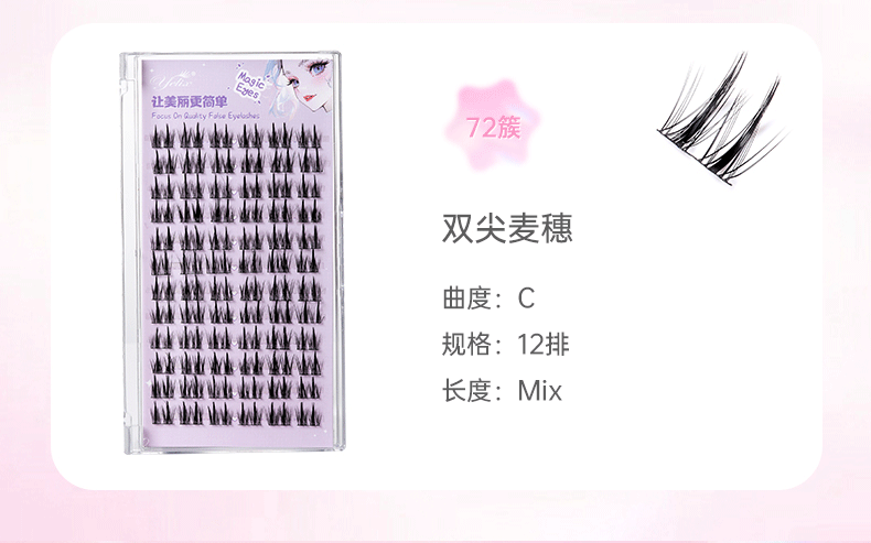 yelix双尖麦穗睫毛假睫毛批发硬梗太阳花自然浓密漫画免胶眼睫毛
