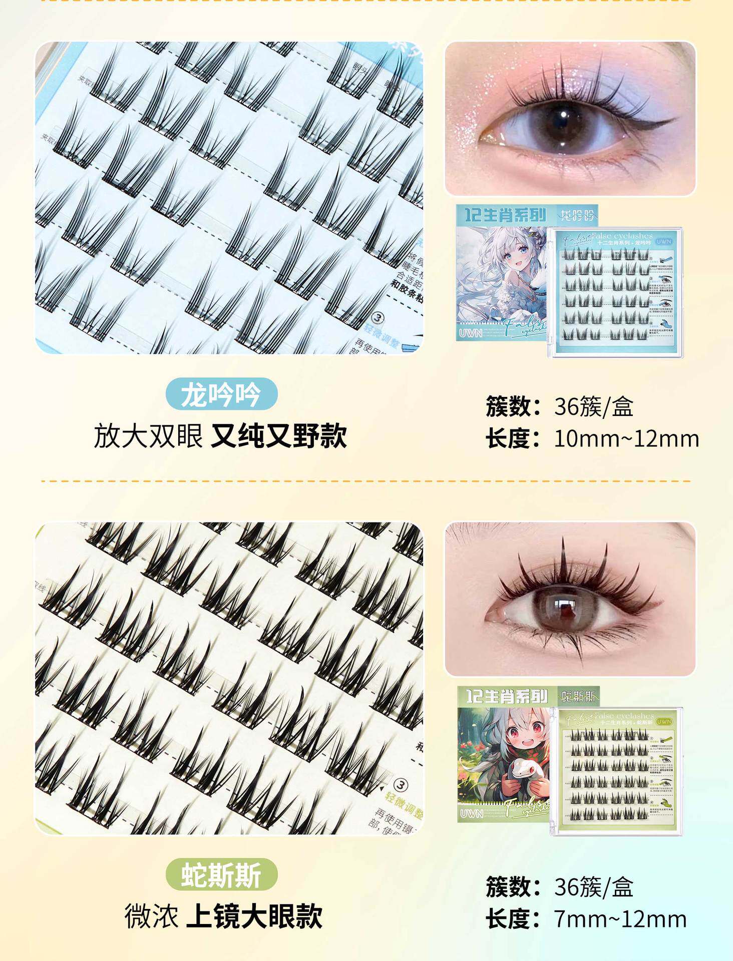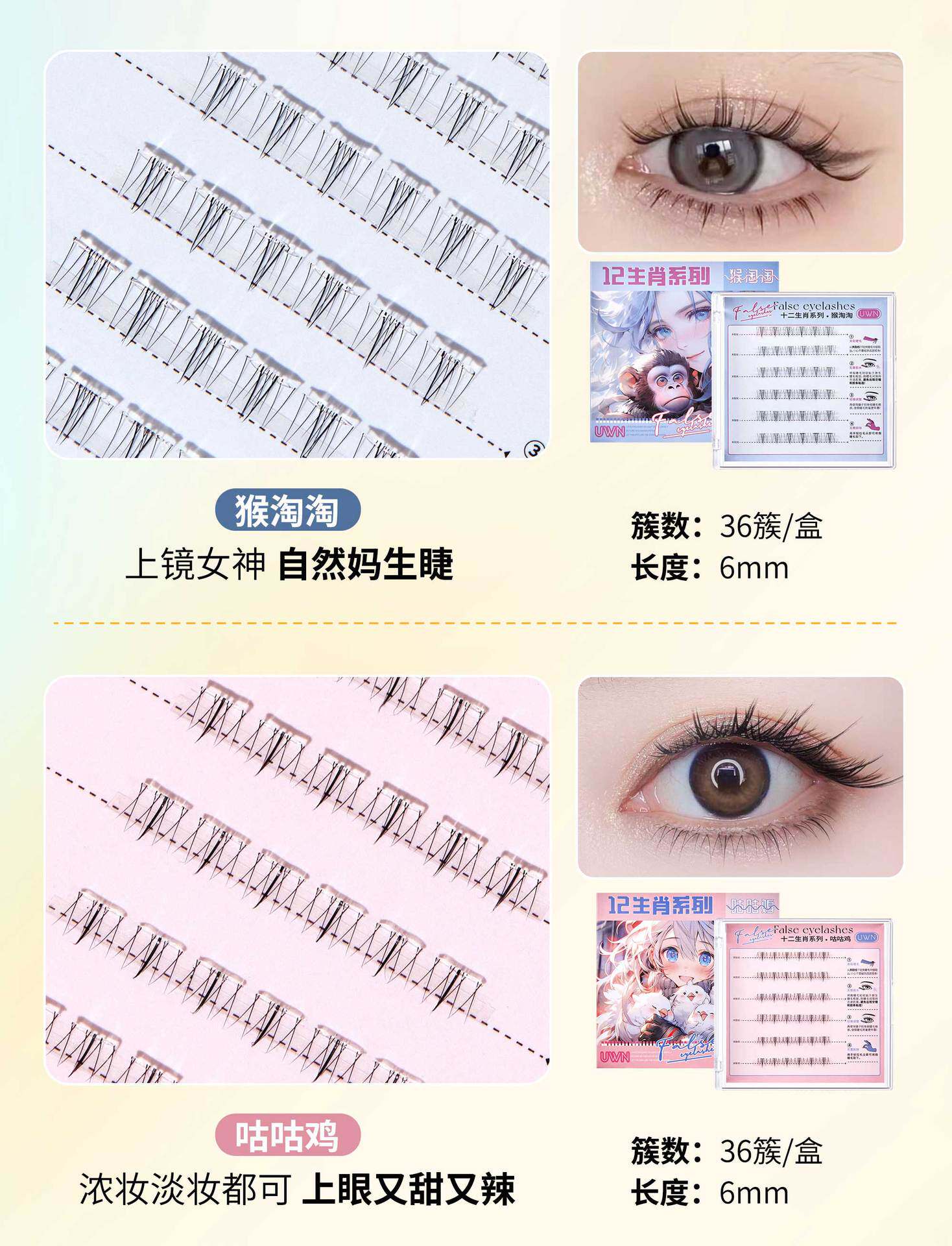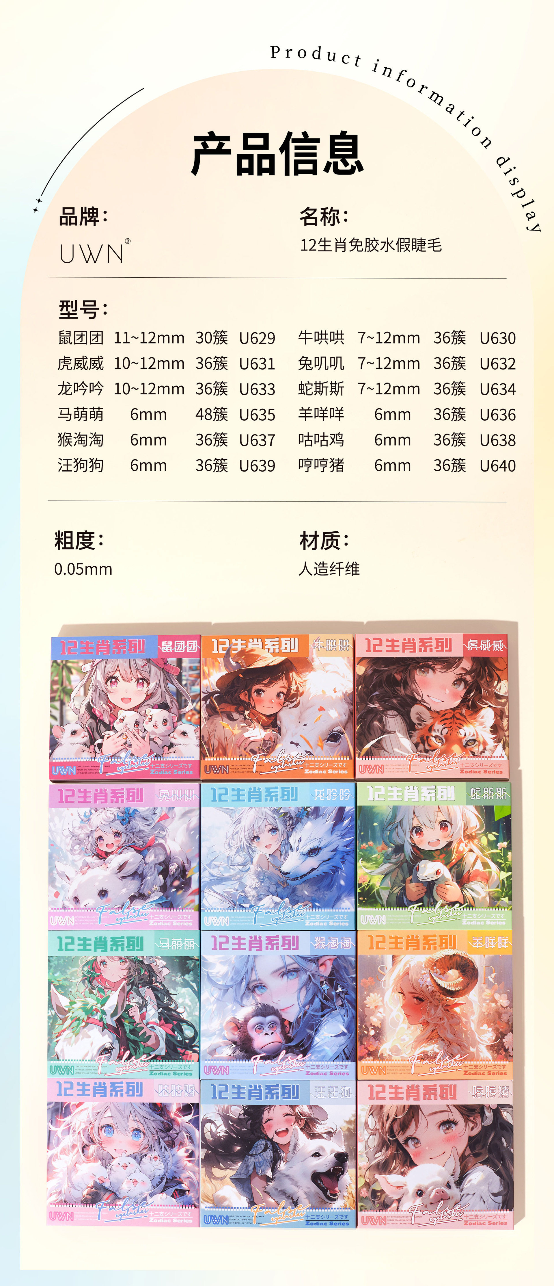 UWN十二生肖系列免胶假睫毛 自然仿真单簇假睫毛新手懒人自粘睫毛