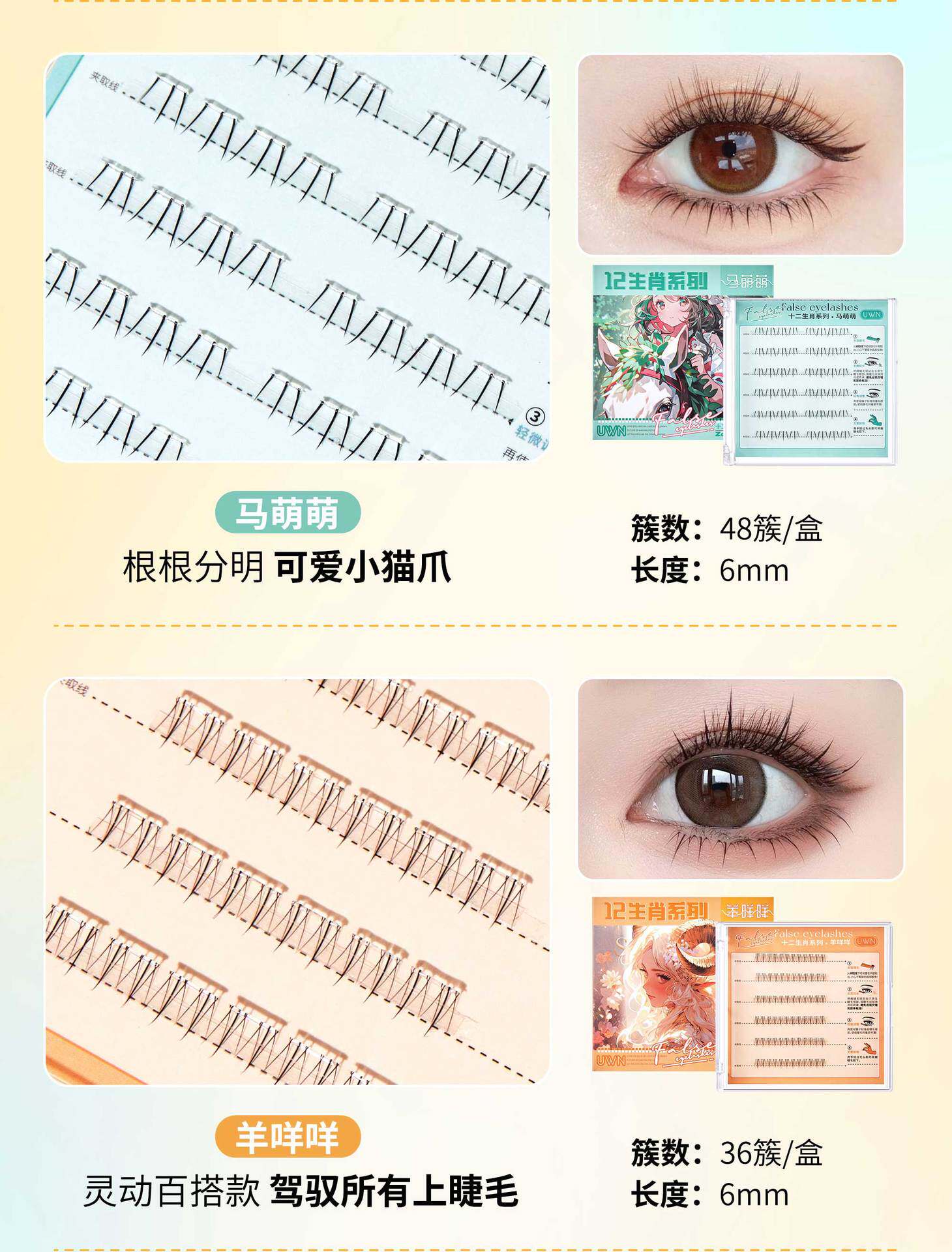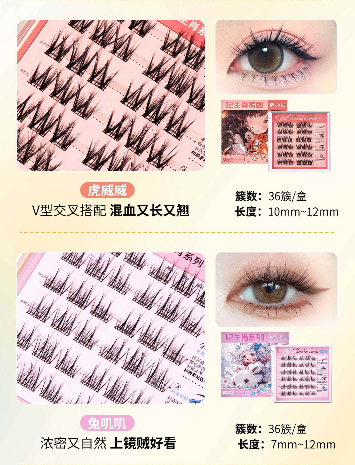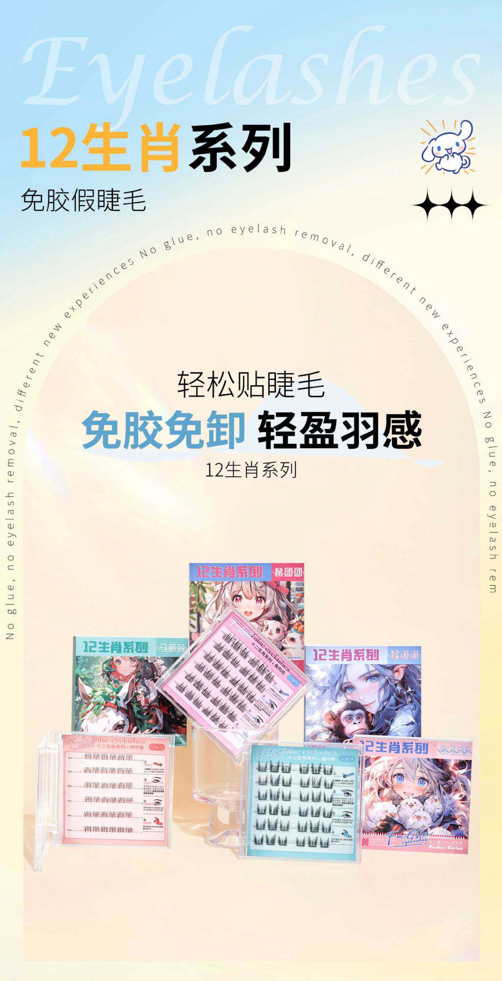 UWN十二生肖系列免胶假睫毛 自然仿真单簇假睫毛新手懒人自粘睫毛