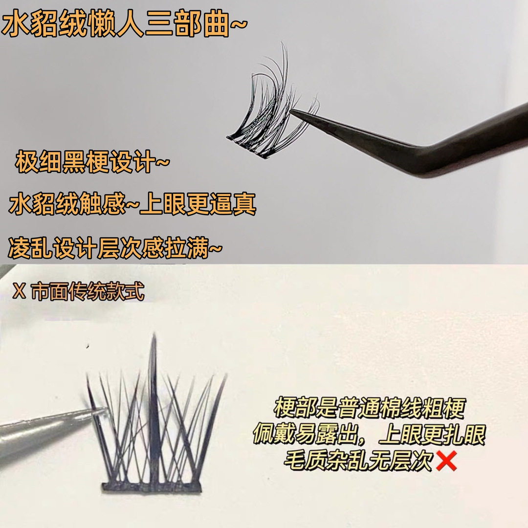 免胶5D婴儿弯层次毛绒绒假睫毛凌乱懒人三部曲自然毛流感仿真单簇