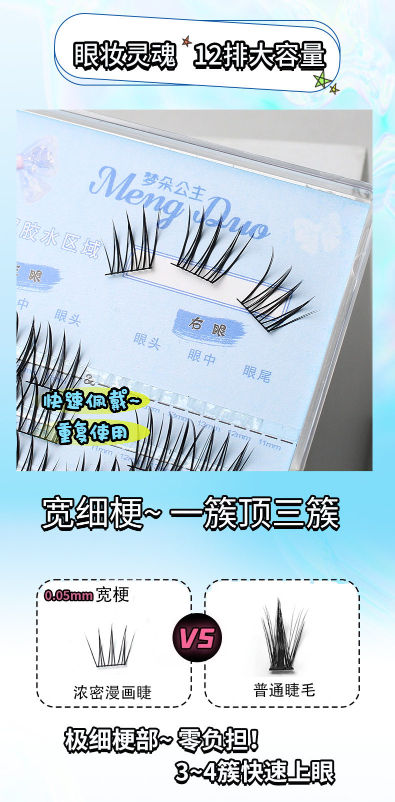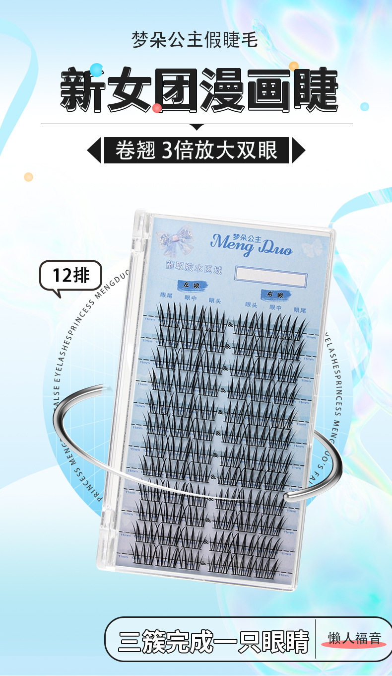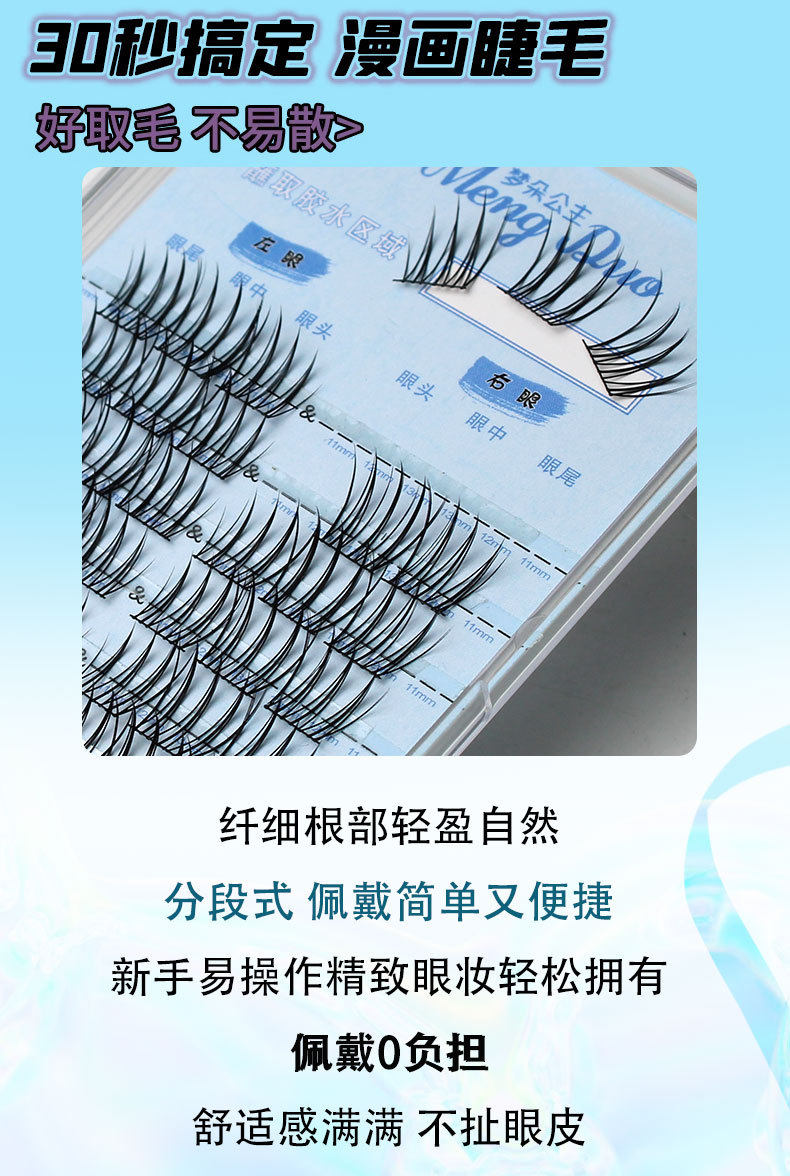 女团爱豆系列假睫毛书女自然仿真三部曲单簇分段式自粘新手卷翘