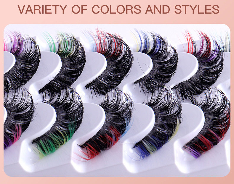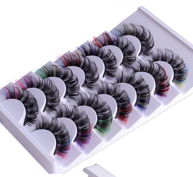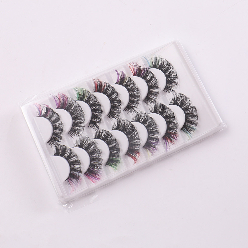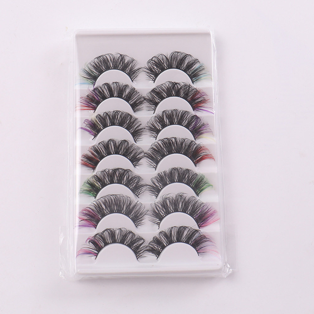 欧美跨境爆款彩色假睫毛7对装俄罗斯卷D曲浓密卷翘眼睫毛现货批发