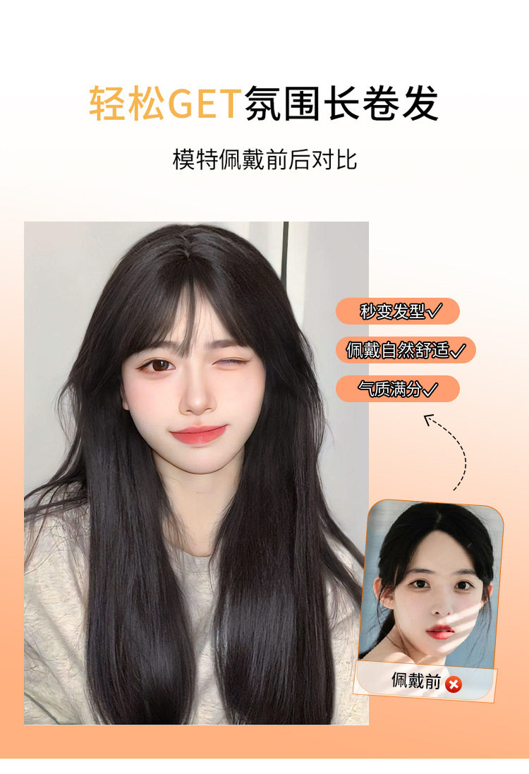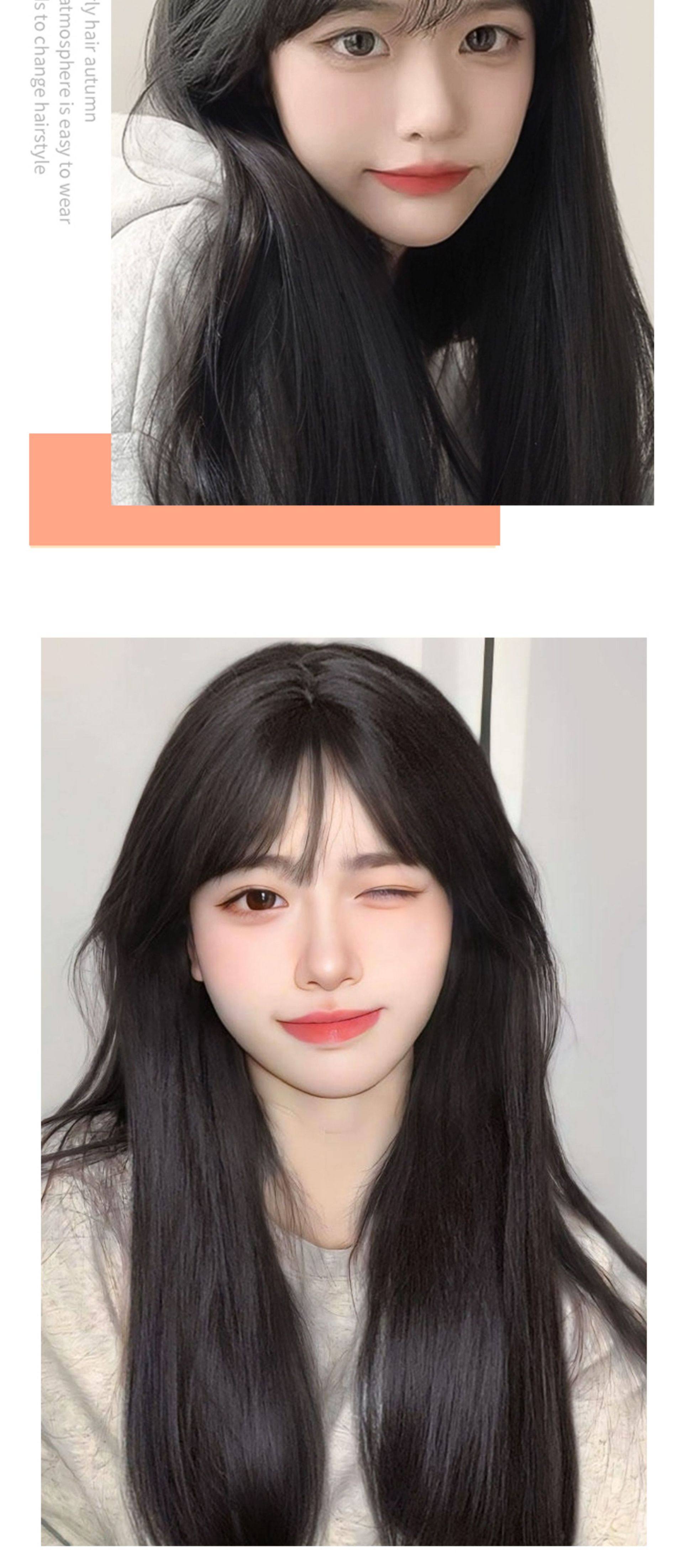 跨境热销假发女生长发长直发全头套式空气刘海黑长直假发全头发型