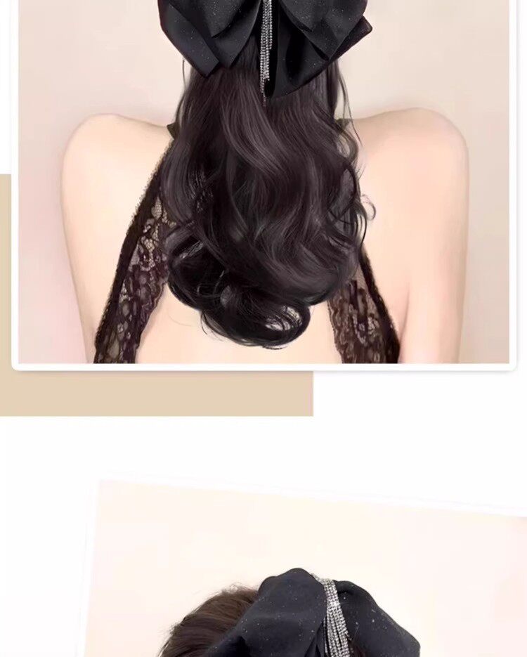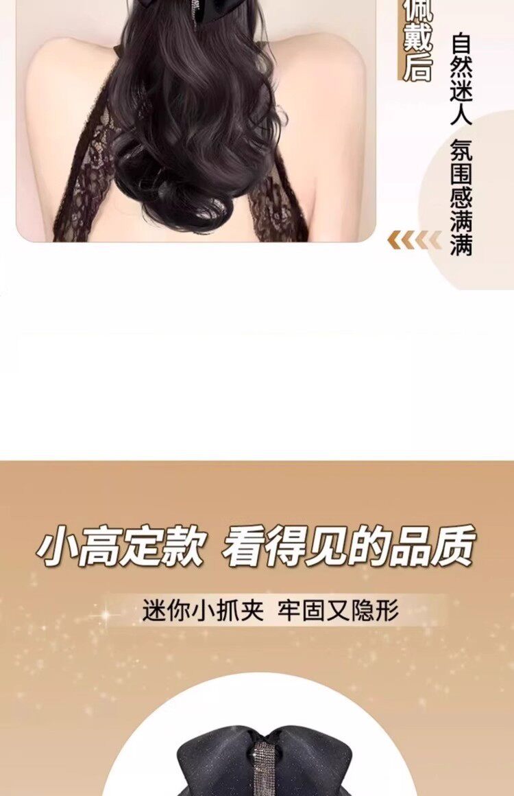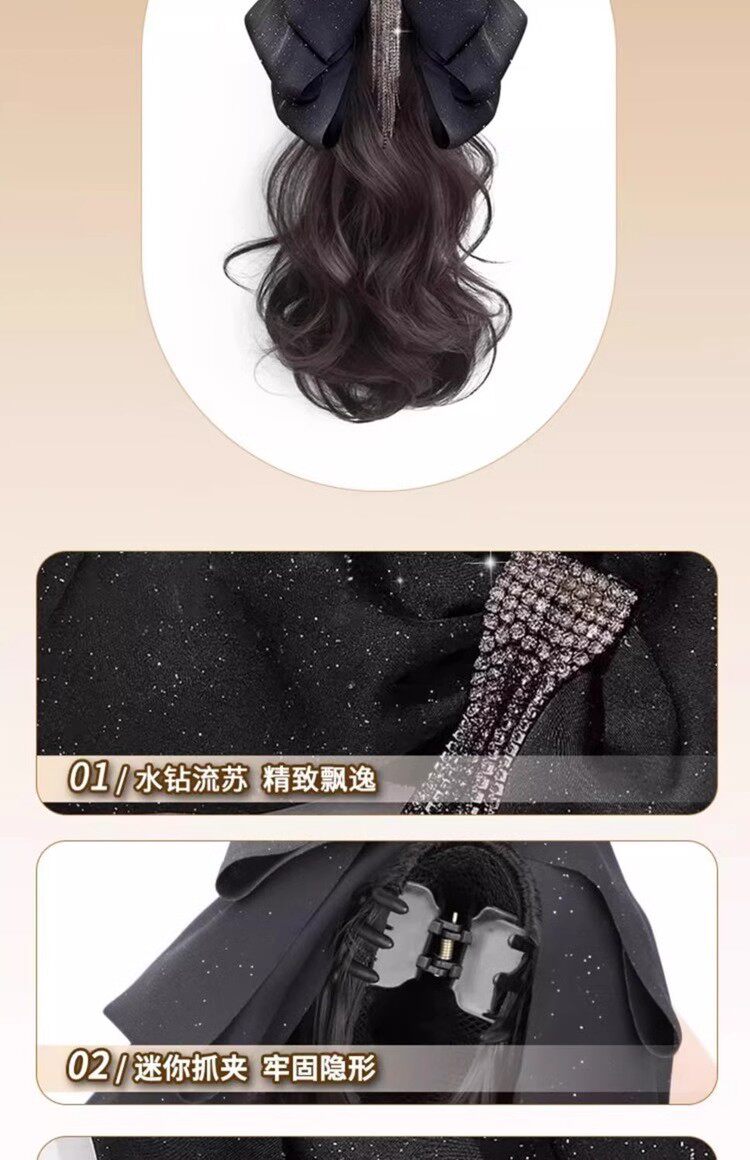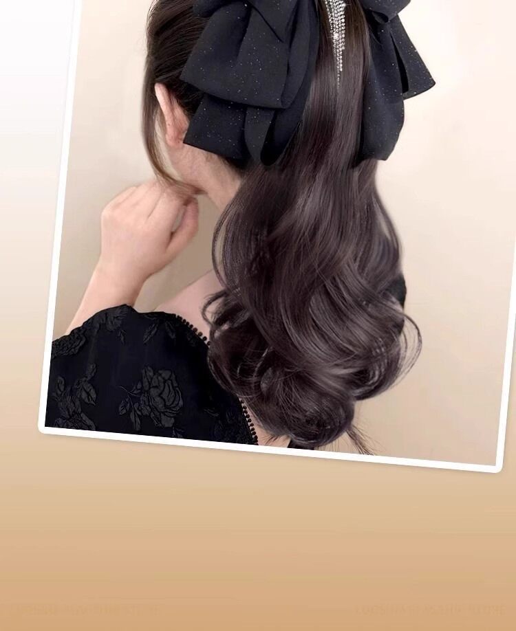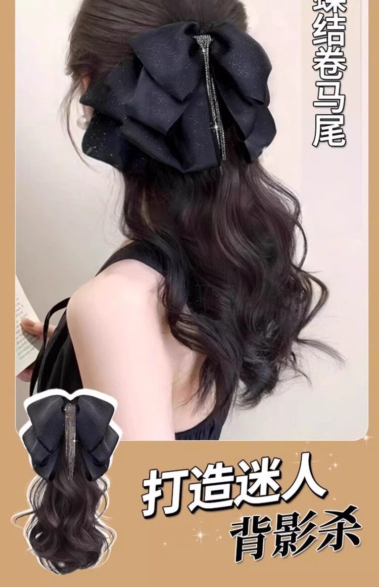 马尾假发女流苏蝴蝶结抓夹仿真发大波浪卷发低扎高颅顶假发辫马尾
