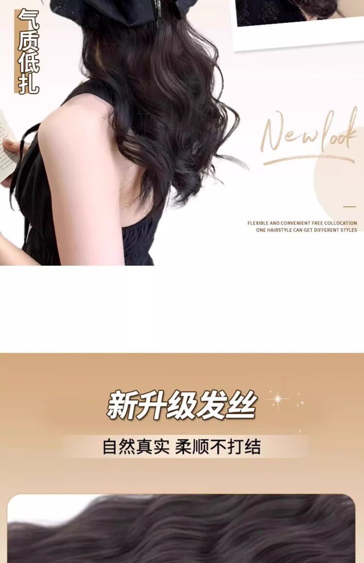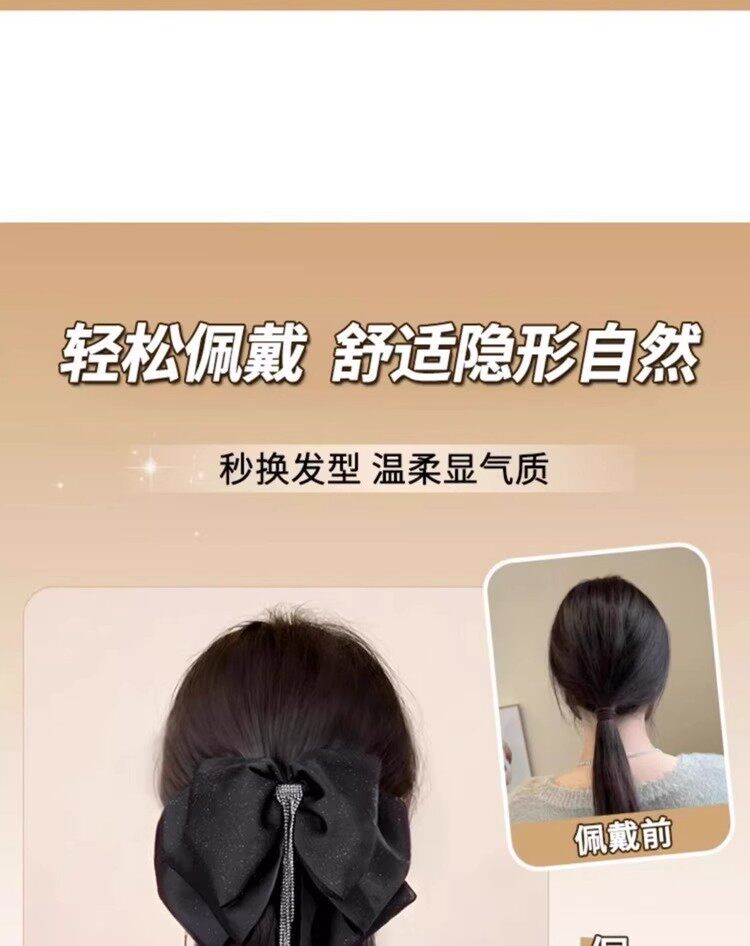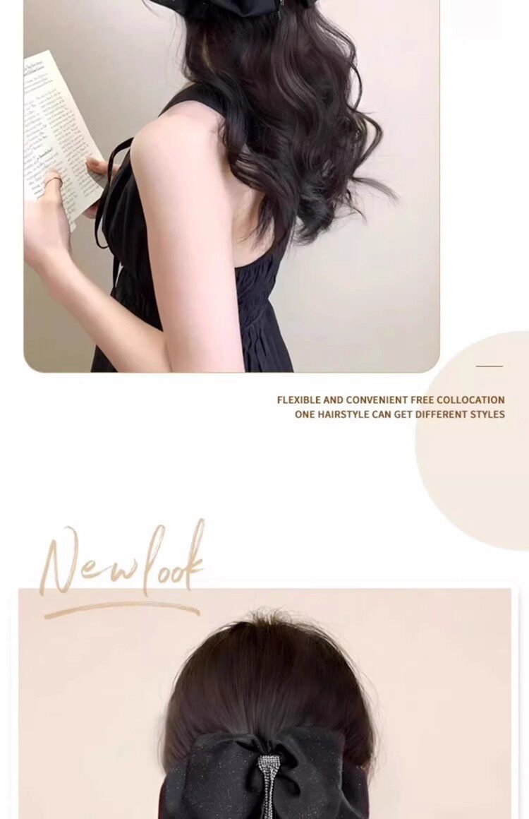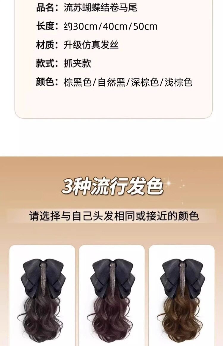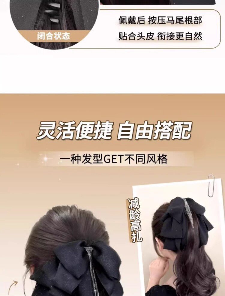 马尾假发女流苏蝴蝶结抓夹仿真发大波浪卷发低扎高颅顶假发辫马尾