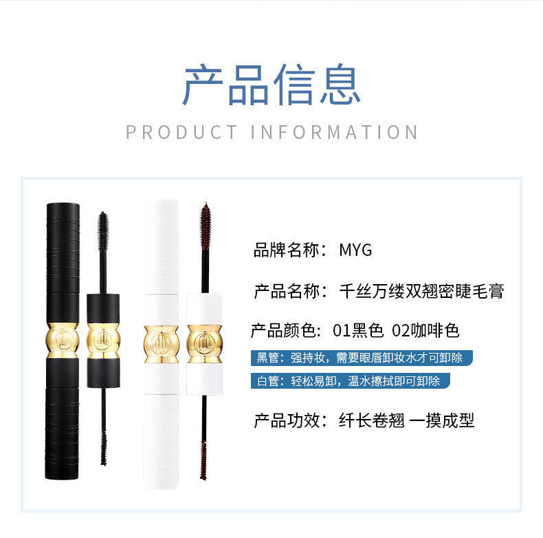 MYG双头正品卷翘浓密定型持妆防水不晕染纤长太阳花温易卸睫毛膏