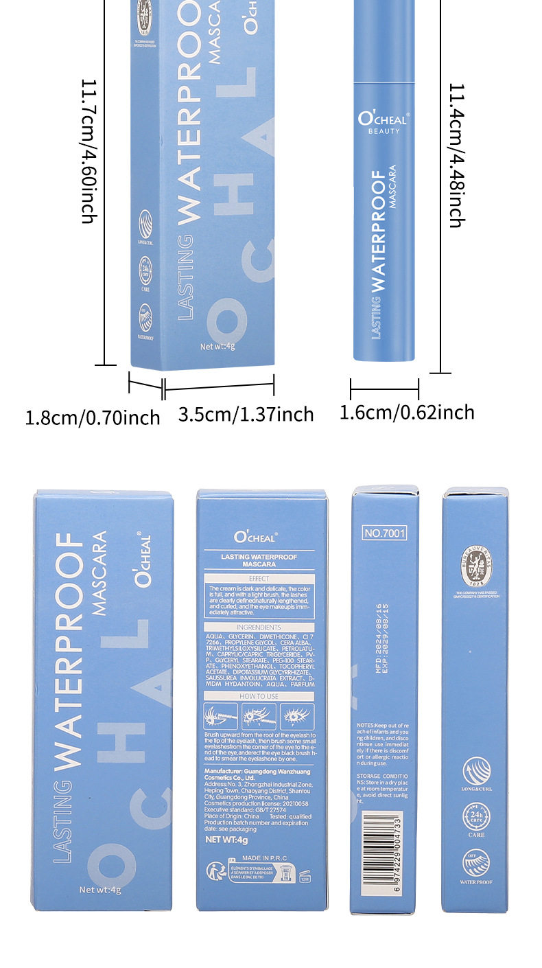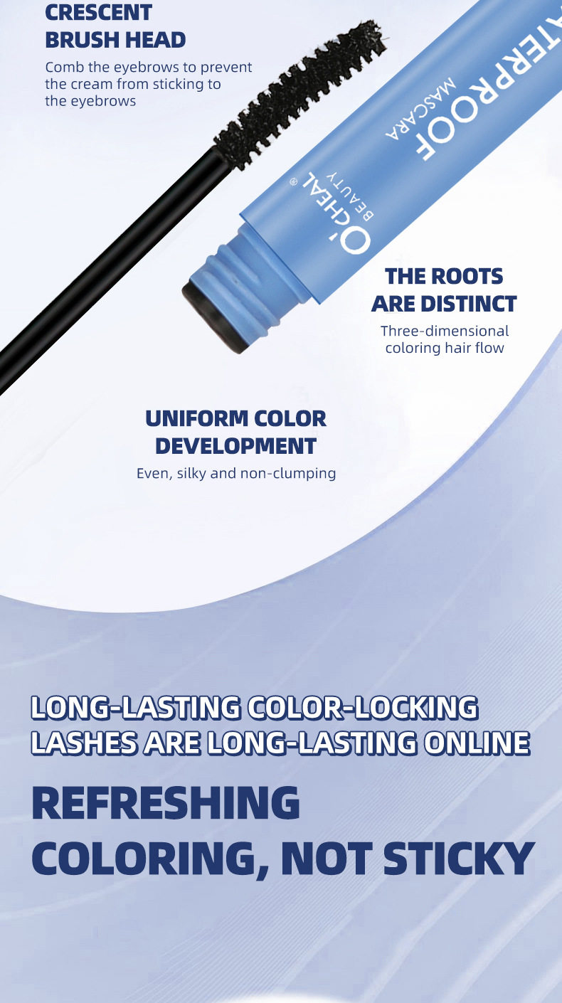 跨境英文版欧倩雅蓝色瓶睫毛膏防水防汗纤长不晕染睫毛膏外贸款