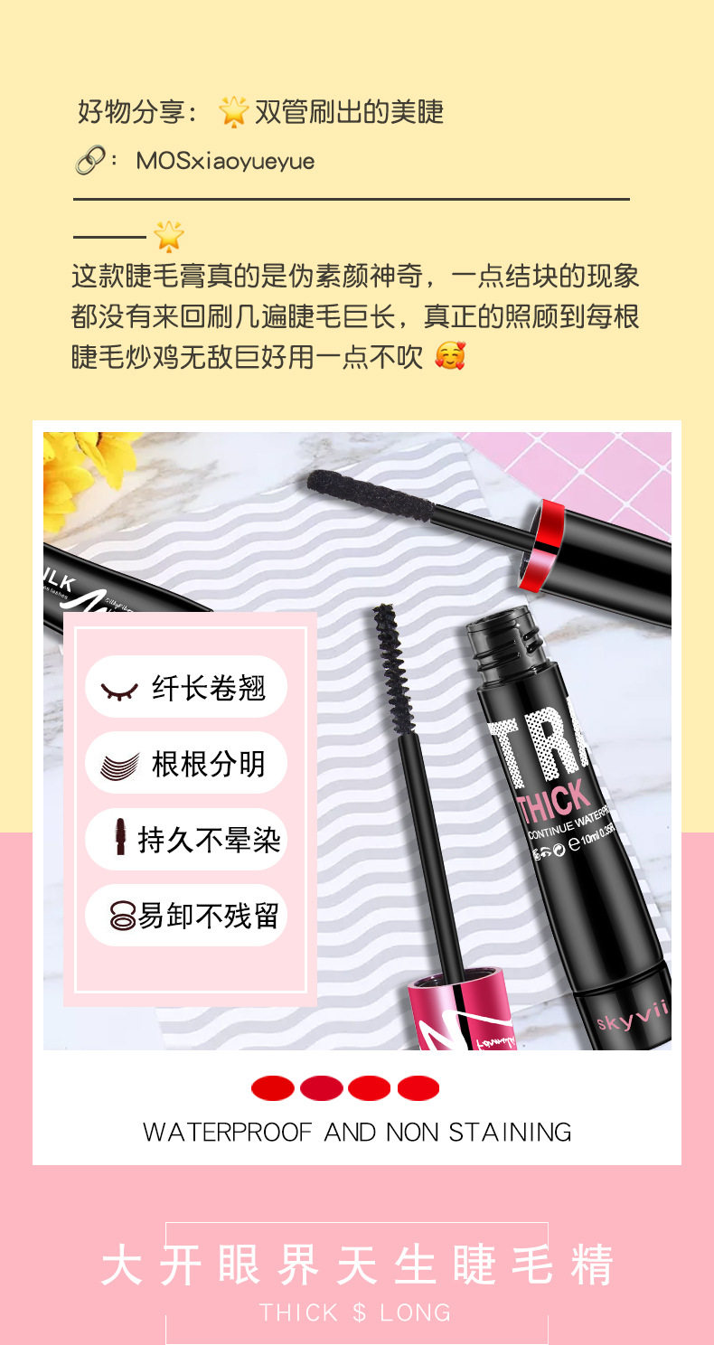 skyvii/诗可雅睫毛膏持久不晕染不掉色卷翘眼部化妆跨境外贸