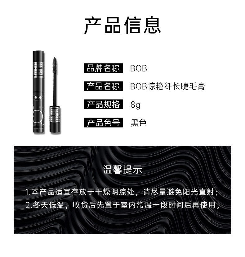 彩妆BOB睫毛膏 女细梳型防水防汗不晕染纤长卷翘持久定型根根分明