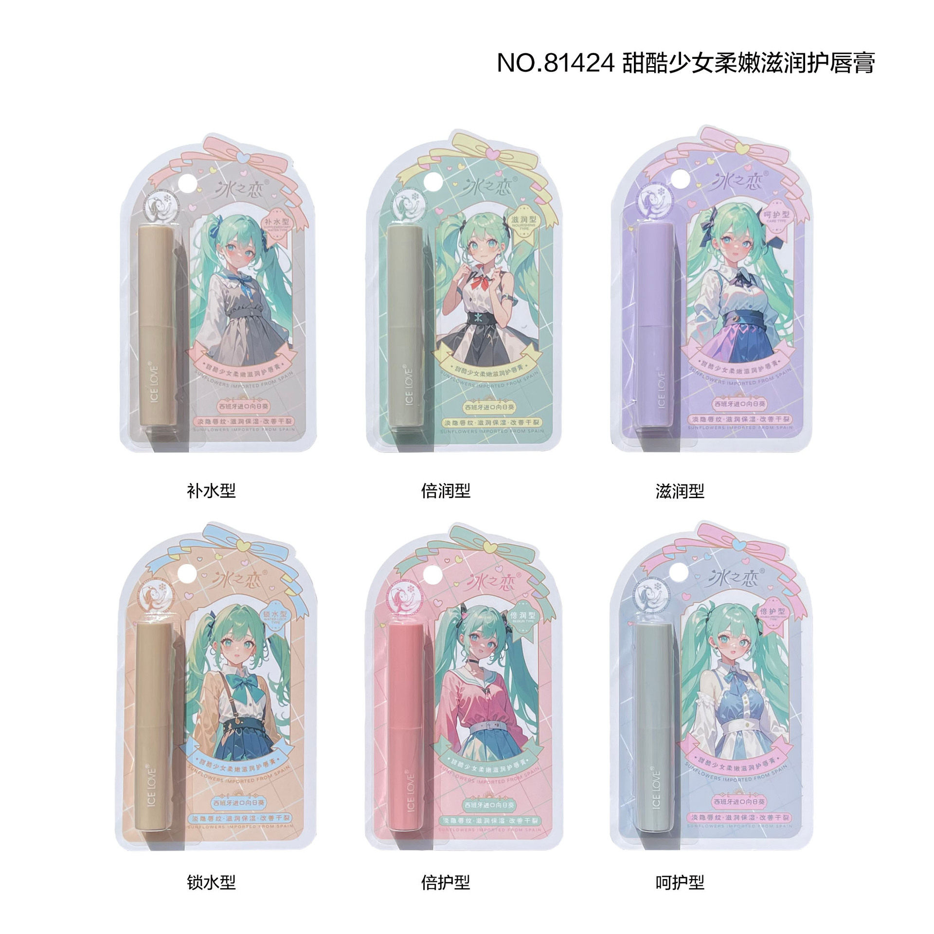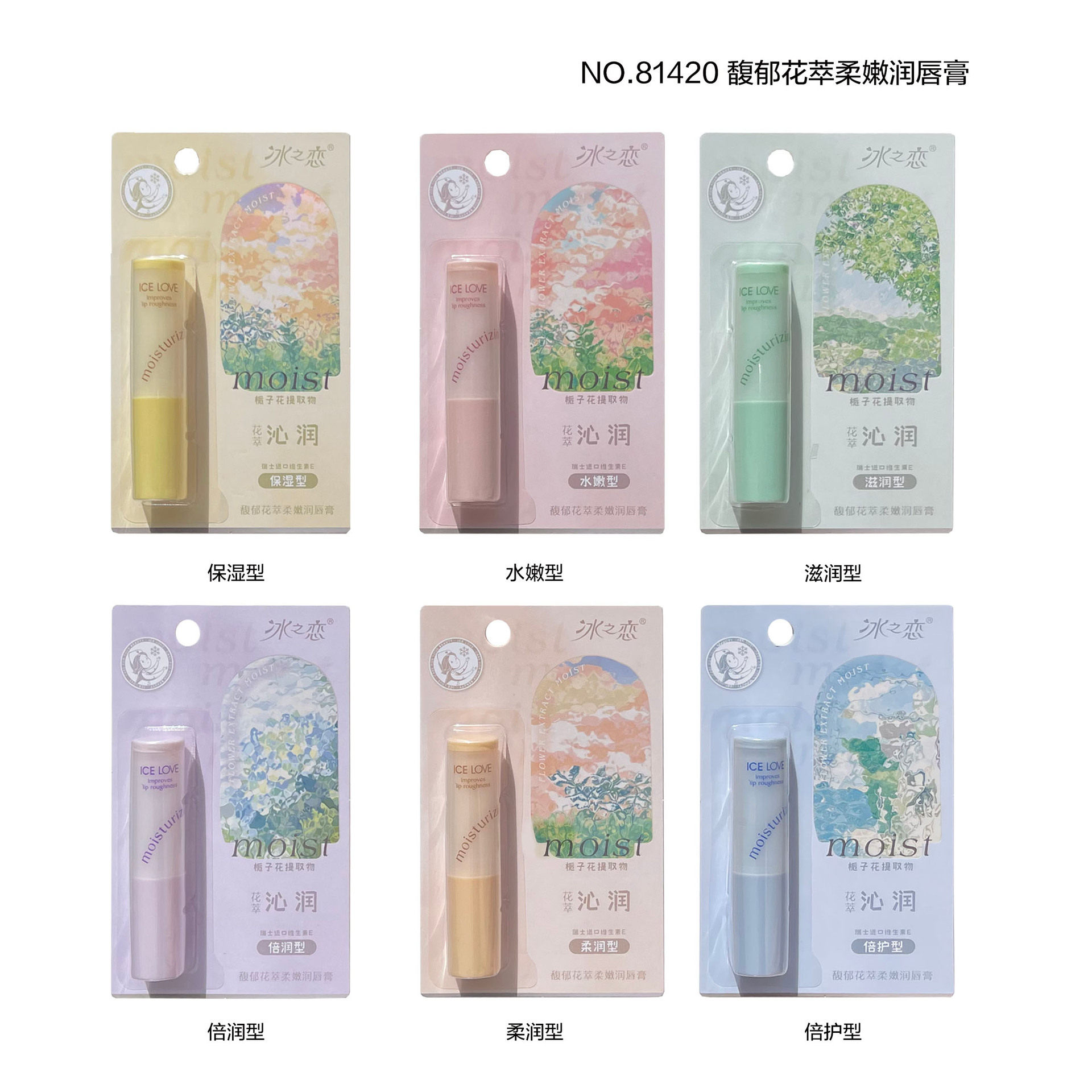 2025年冰之恋纸卡片包装女士润唇膏唇油芦荟蜂蜜口白秋冬随身便携