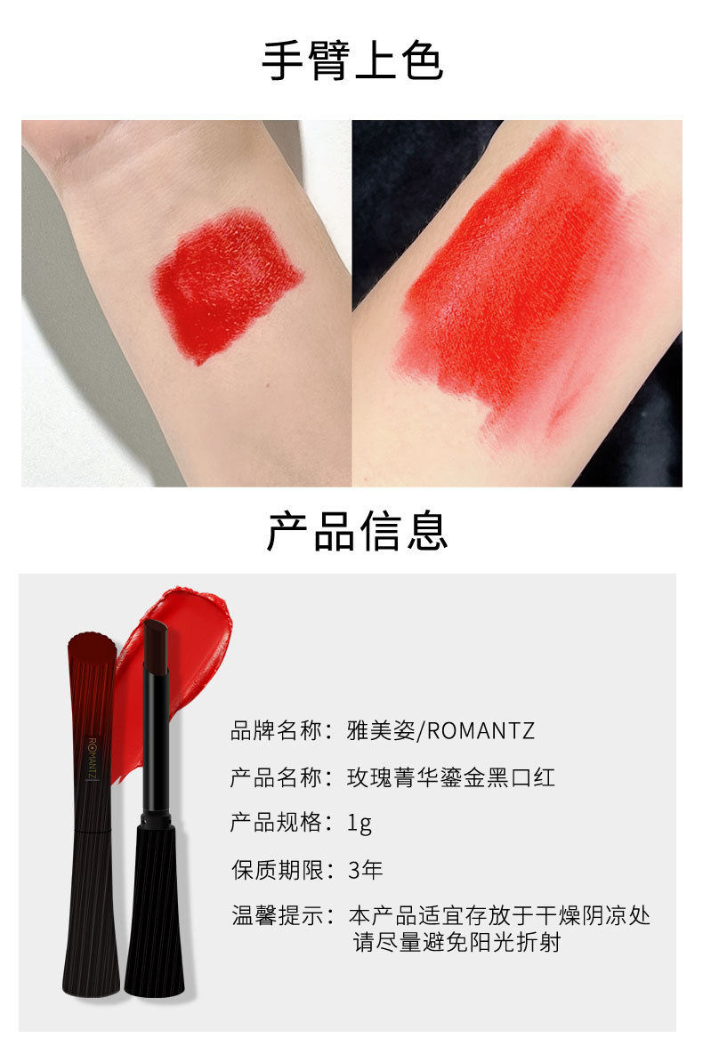 Romantz/雅美姿玫瑰菁华黑口红品牌正品不掉色不沾杯不脱色唇膏