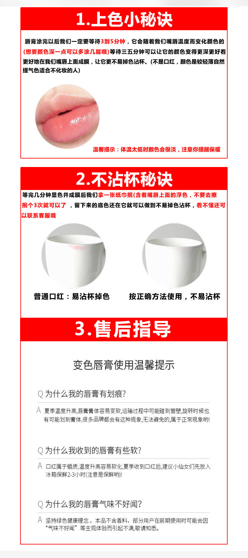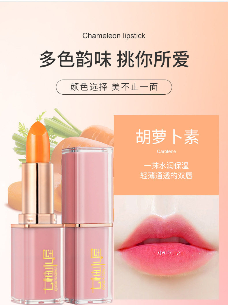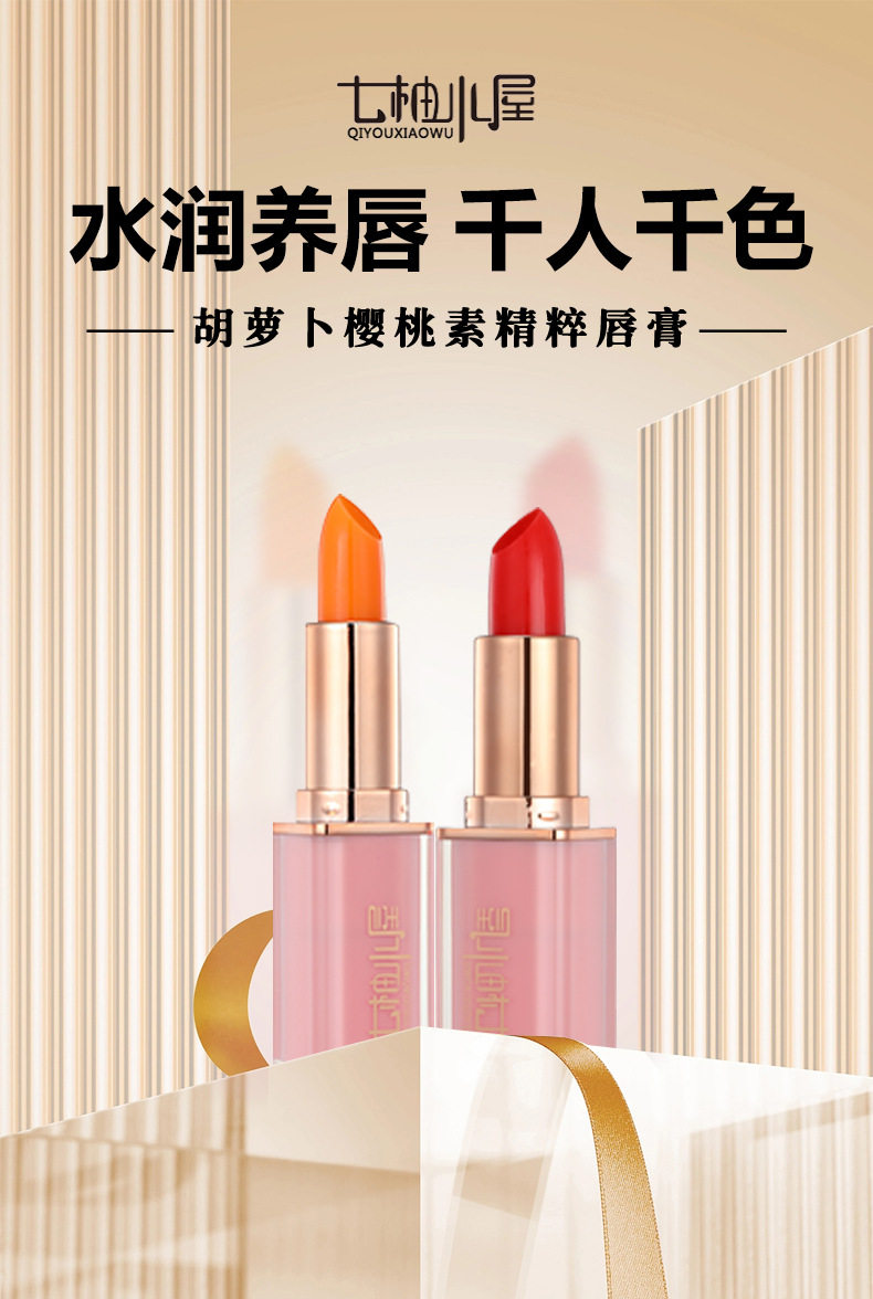 七柚小屋胡萝卜素樱桃红变色润唇膏孕妇可用千人千色不沾杯不掉色