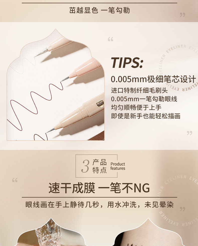 ROZO极细精雕眼线液笔不晕染防水防汗持久速干卧蚕笔支持一件代发