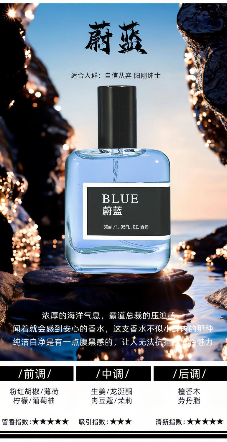 跨境爆款网红tk调香师男士蔚蓝香水大牌平替香味自然持久直播学生