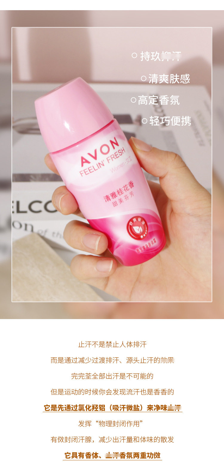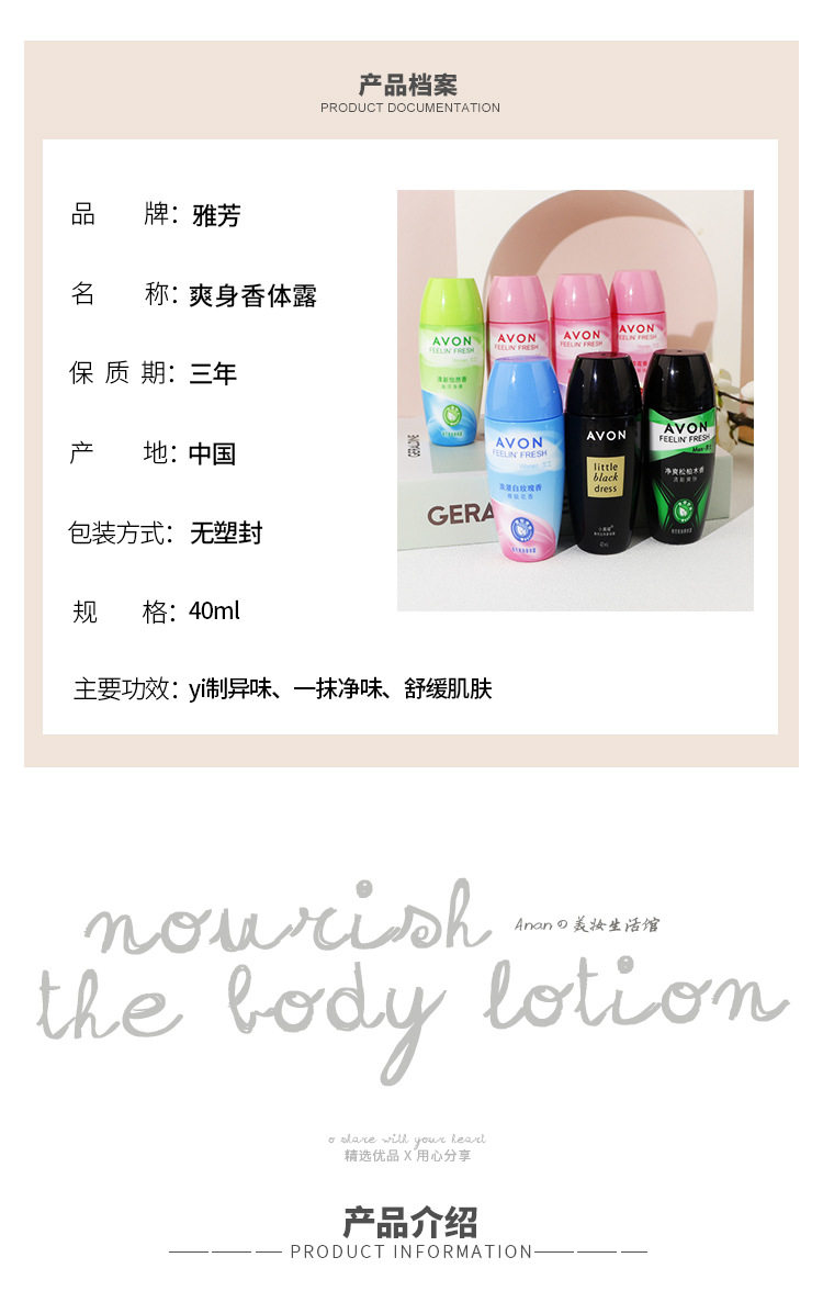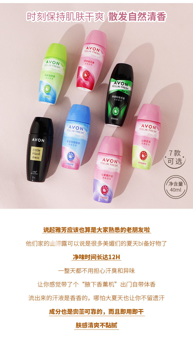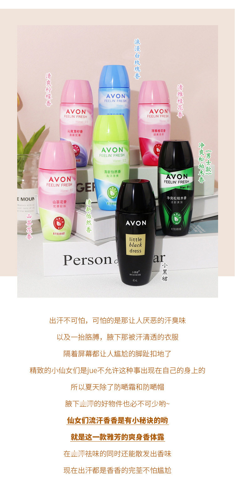 avon雅芳爽身香体露小黑裙滚珠香体露干爽身女男腋下清新淡香